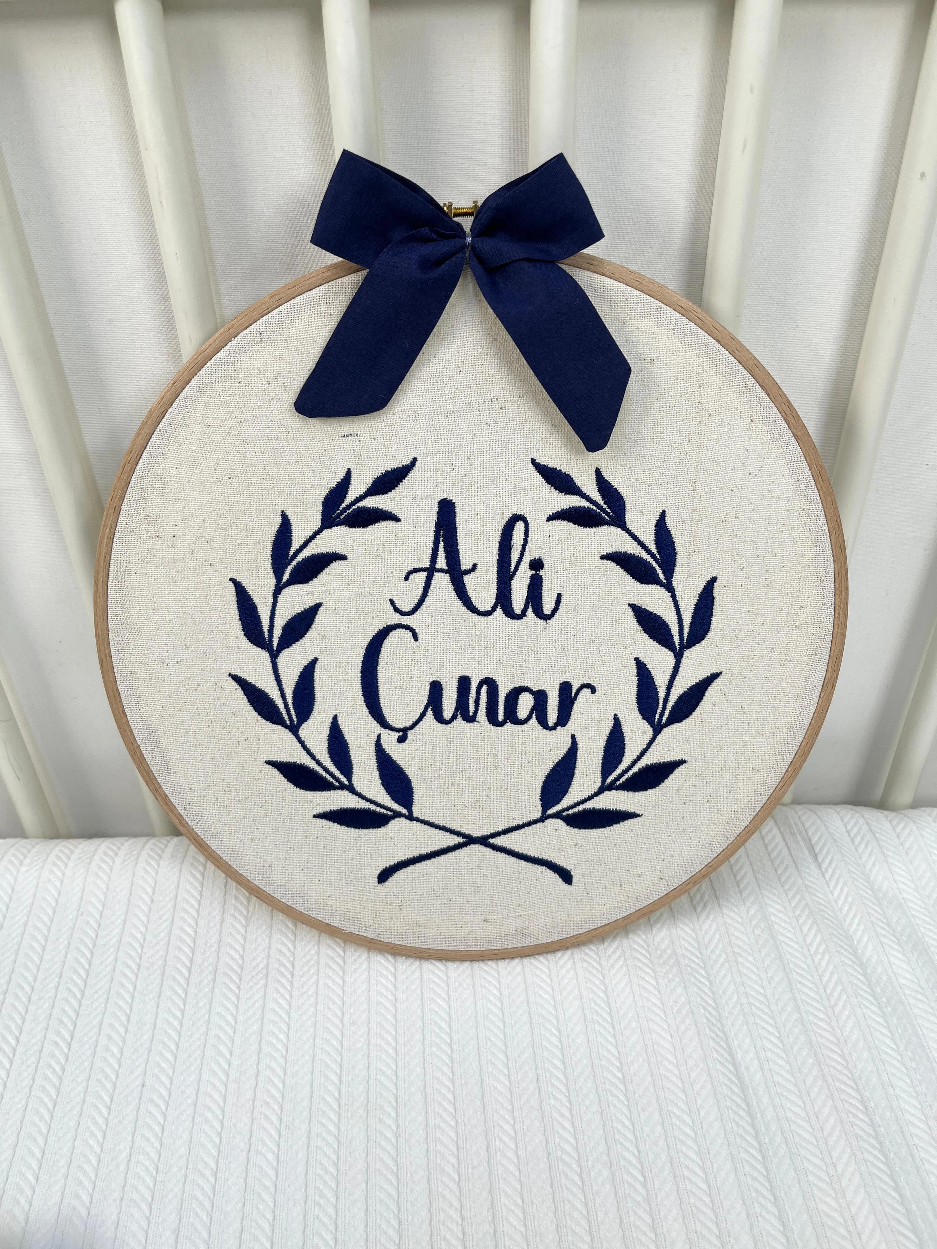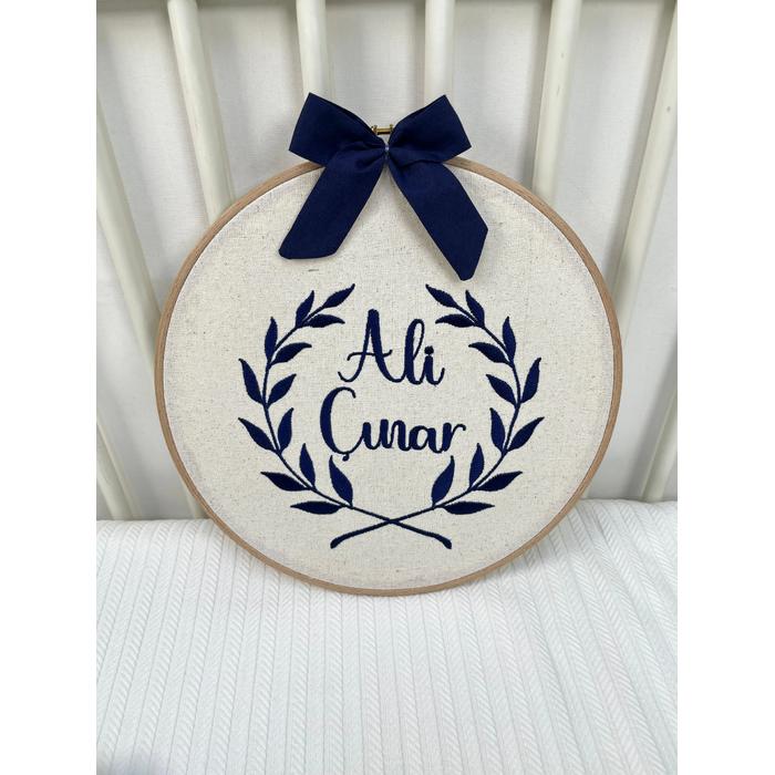 Bej İsviçre keteni kumaştan üretilen kasnak kapı süsü çapı 29 cmdir.