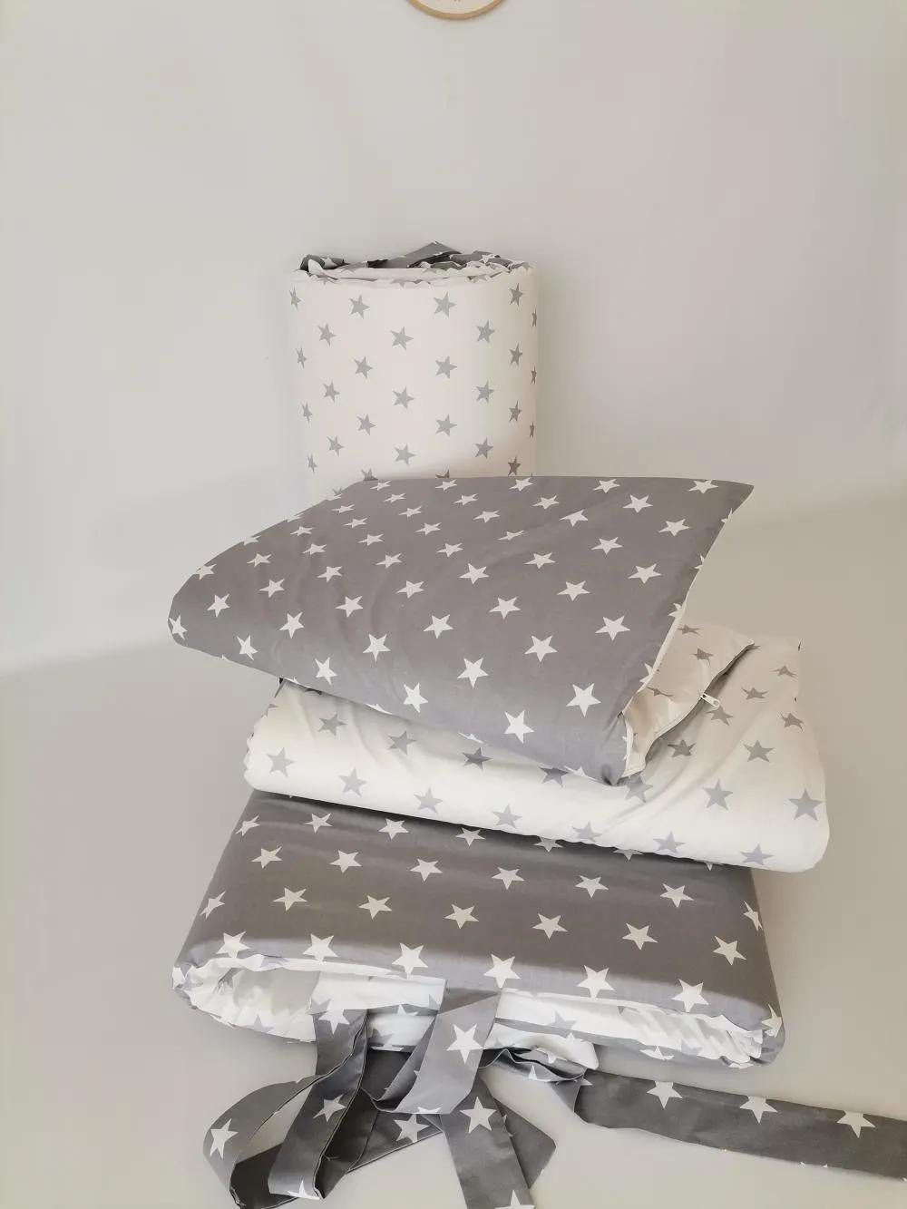 Koyu gri yıldızlıve Beyaz gri yıldızlı Poplin kumaştan üretilmiş 4 parça korumalık