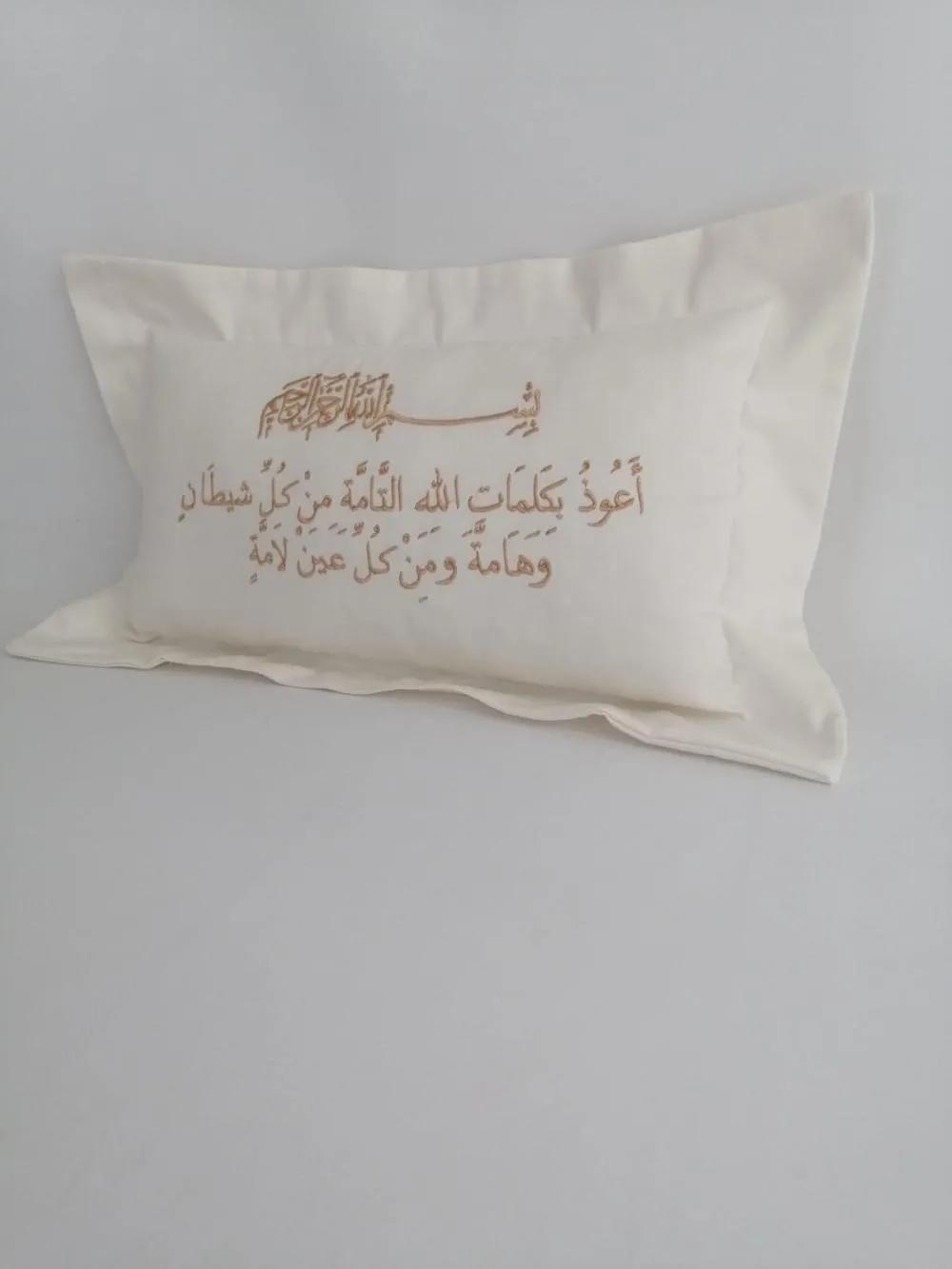 Poplin kumaştan üretilen nazar duası ve besmele işlemeli Yastık
