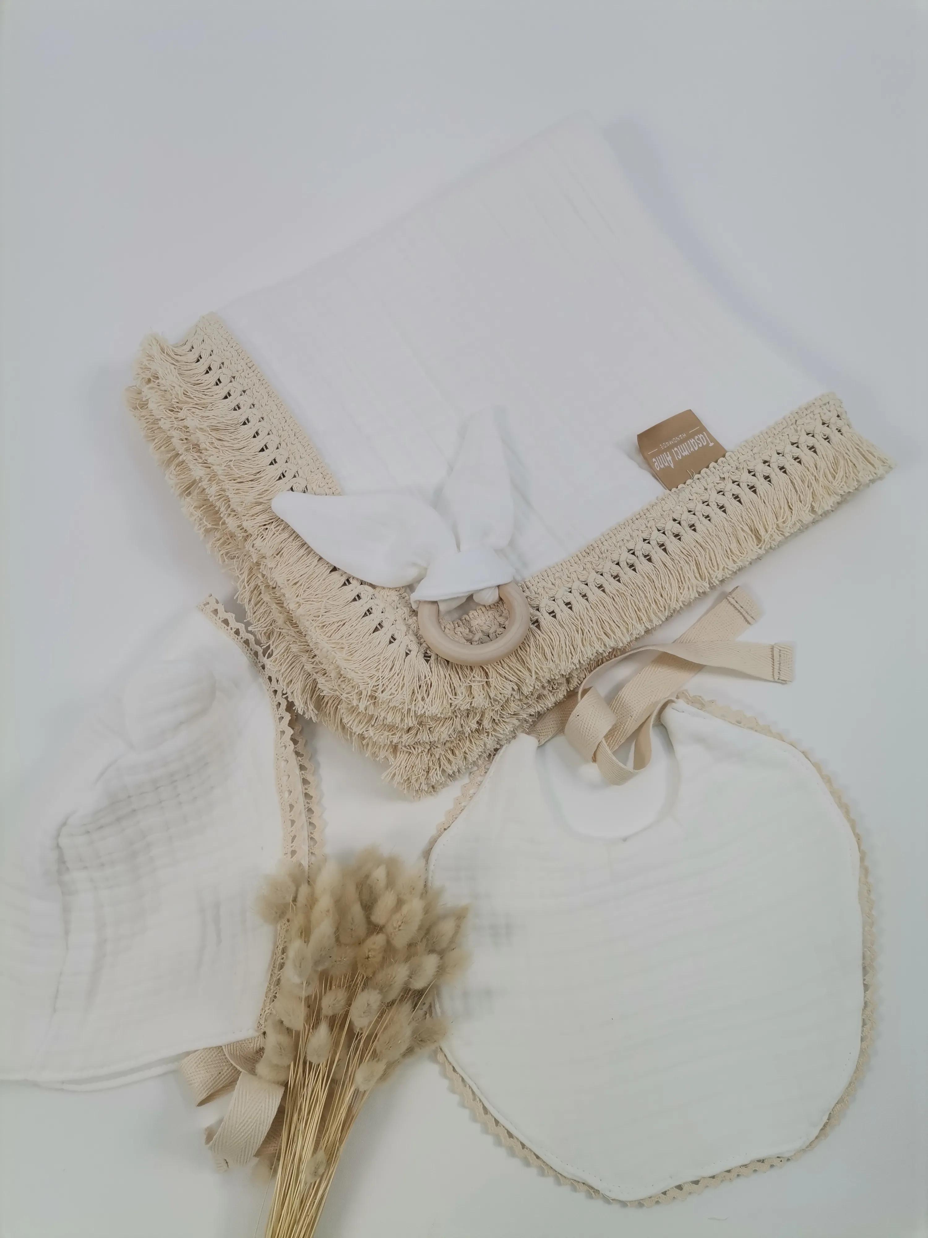 1 adet 4 kat püsküllü müslin battaniye 100x110 cm