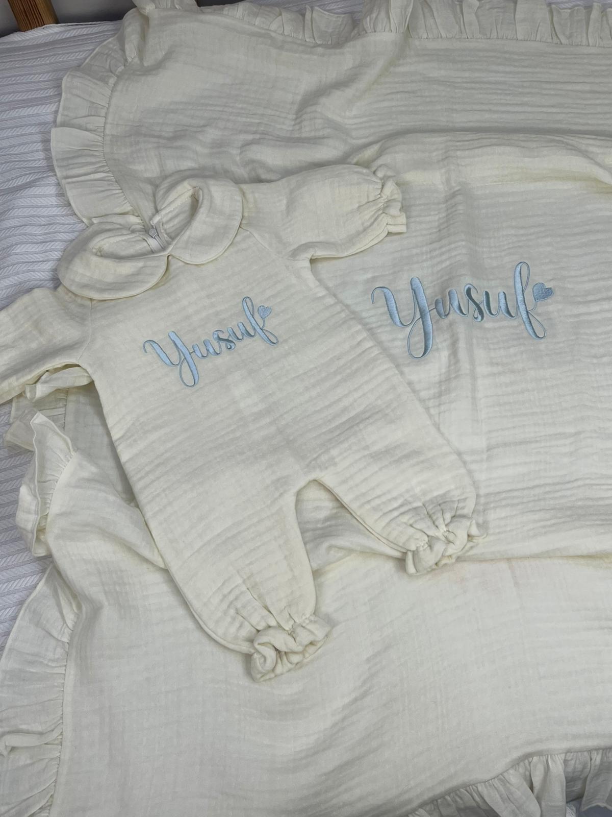 Müslin tulum takımı ve battaniye 3 parçadır ,