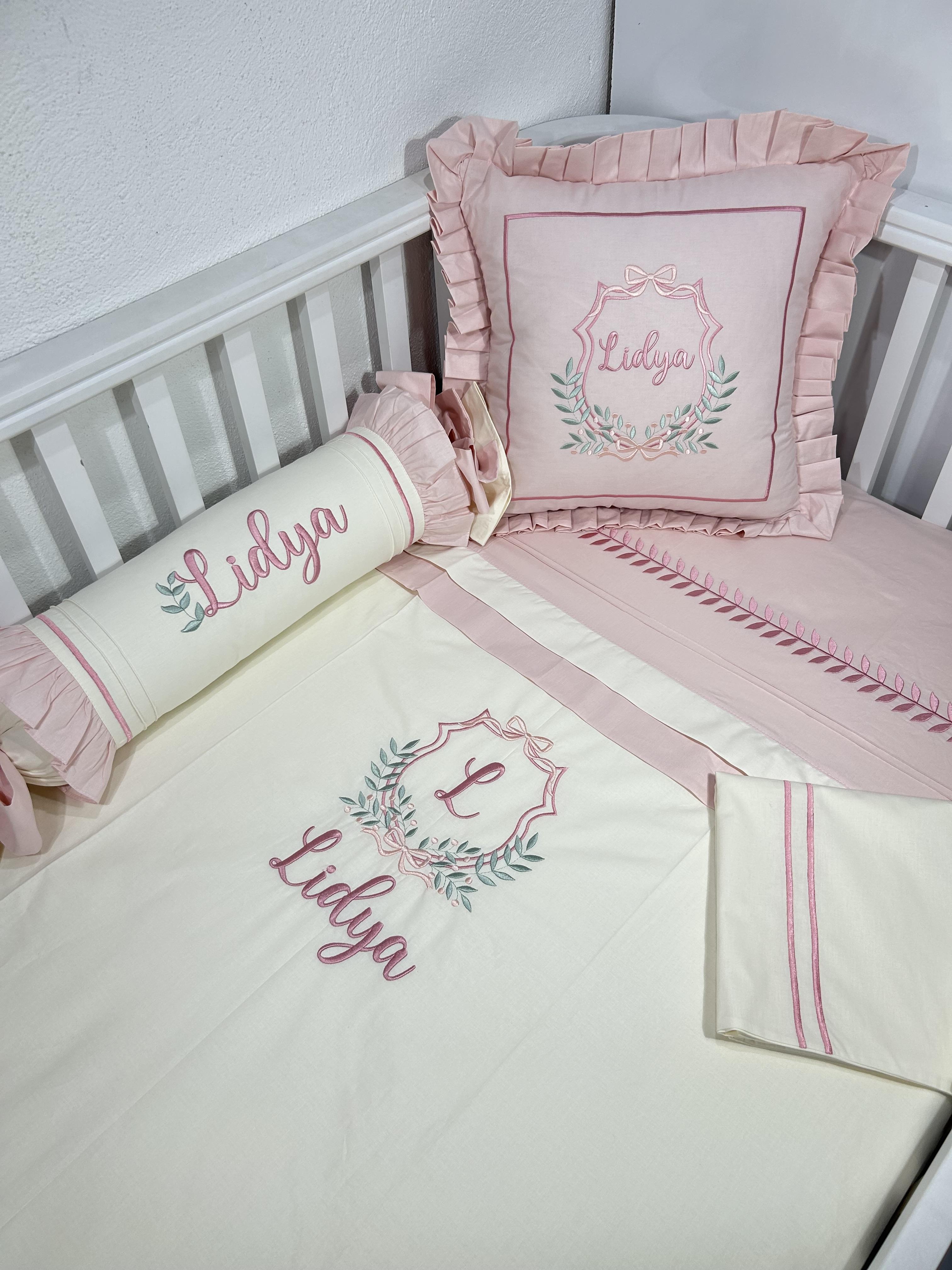 Nevresim takımı 5 parça krem ve pudra poplin 2