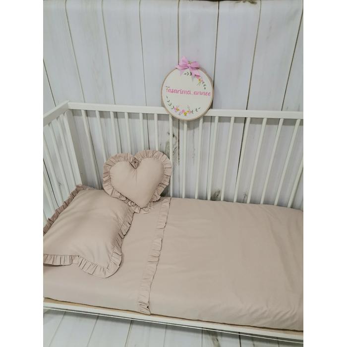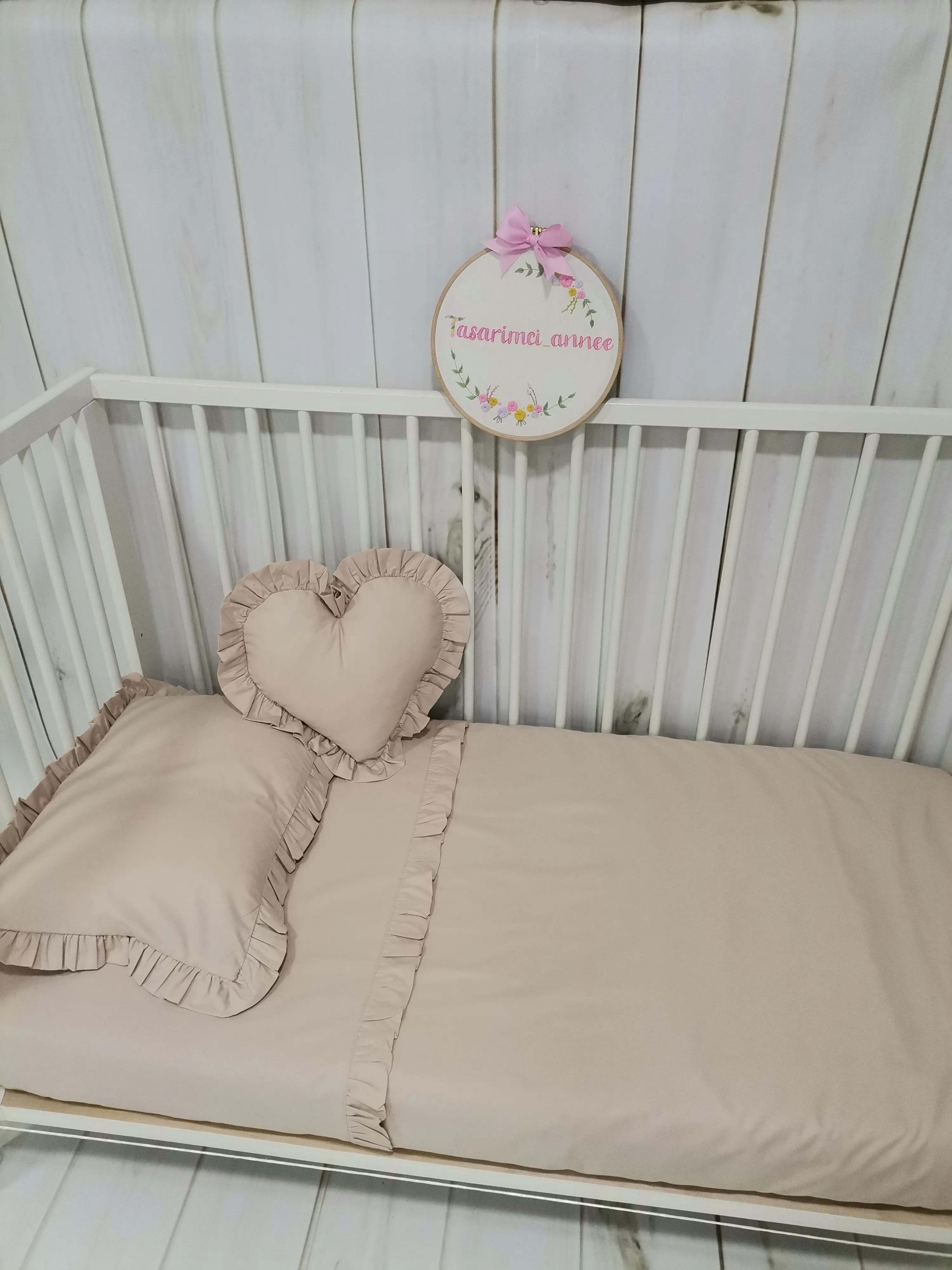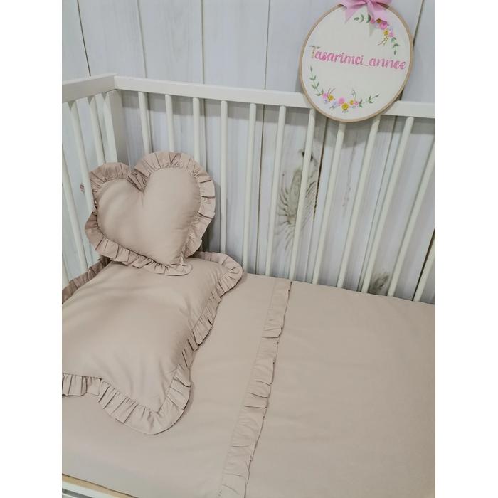 V12 bej poplin kumaştan üretilen fırfırlı nevresim takımı içeriği ;