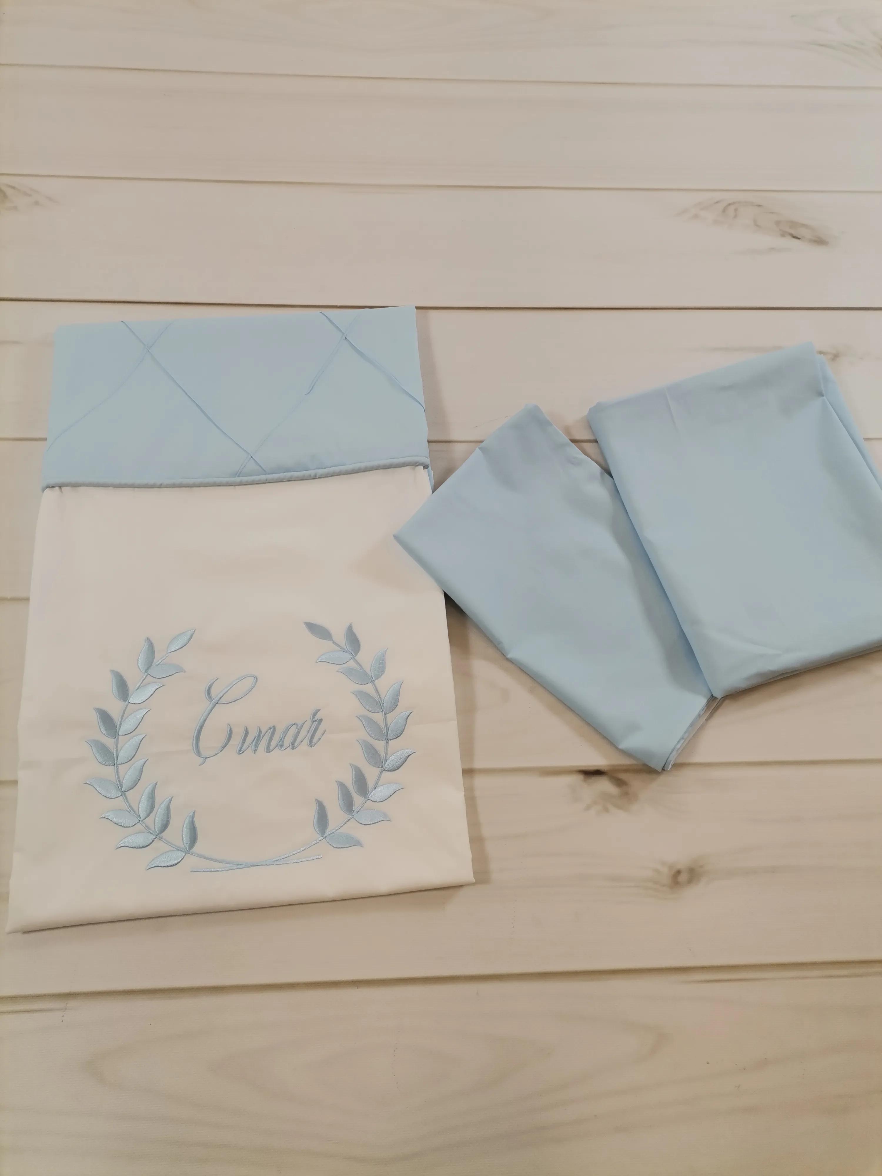 Mavi - Beyaz Poplin kumaştan üretilen Nevresim Takımı içeriği ;