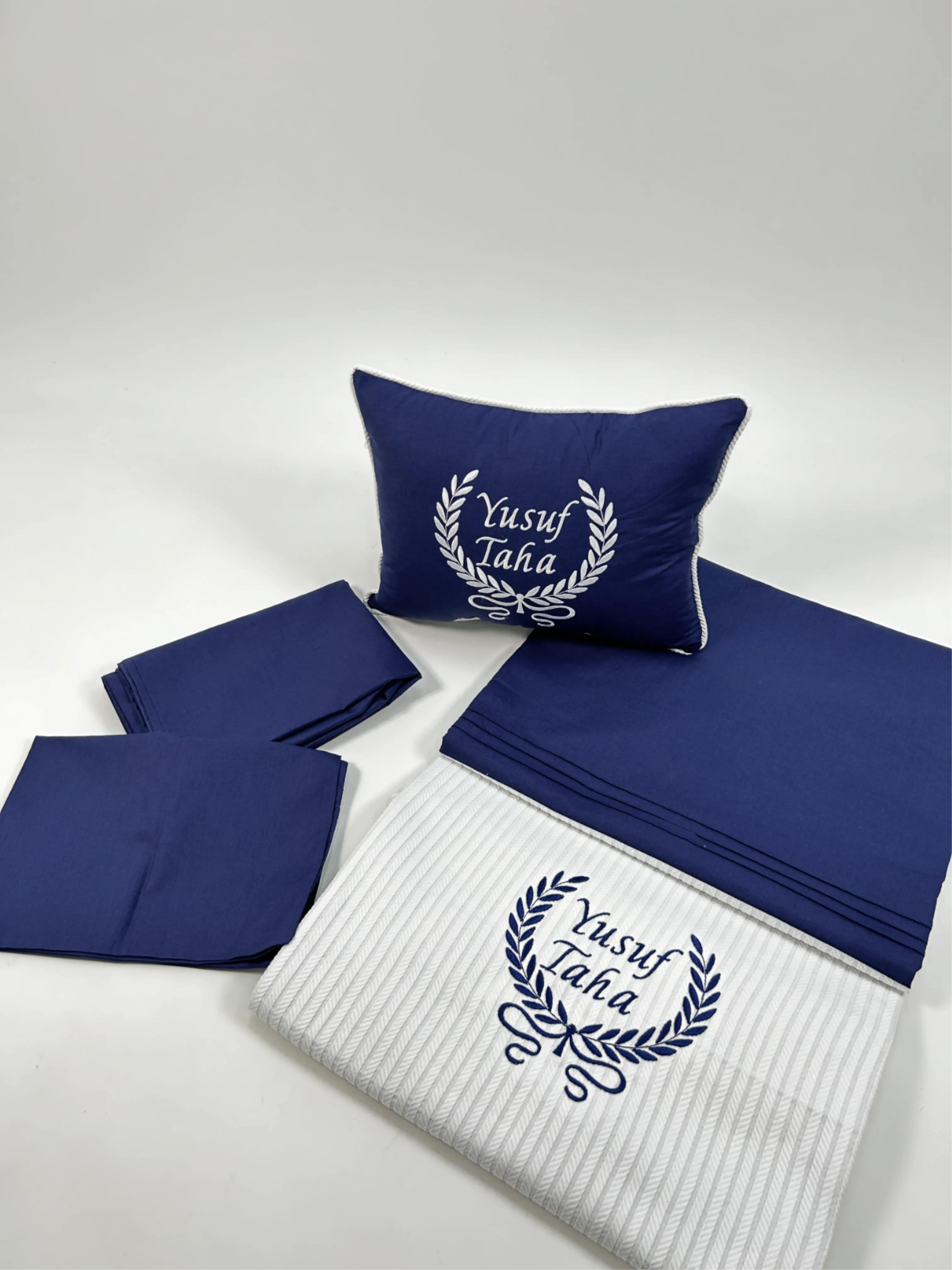 Pike takımı 4 parça beyaz örgü pike - lacivert poplin