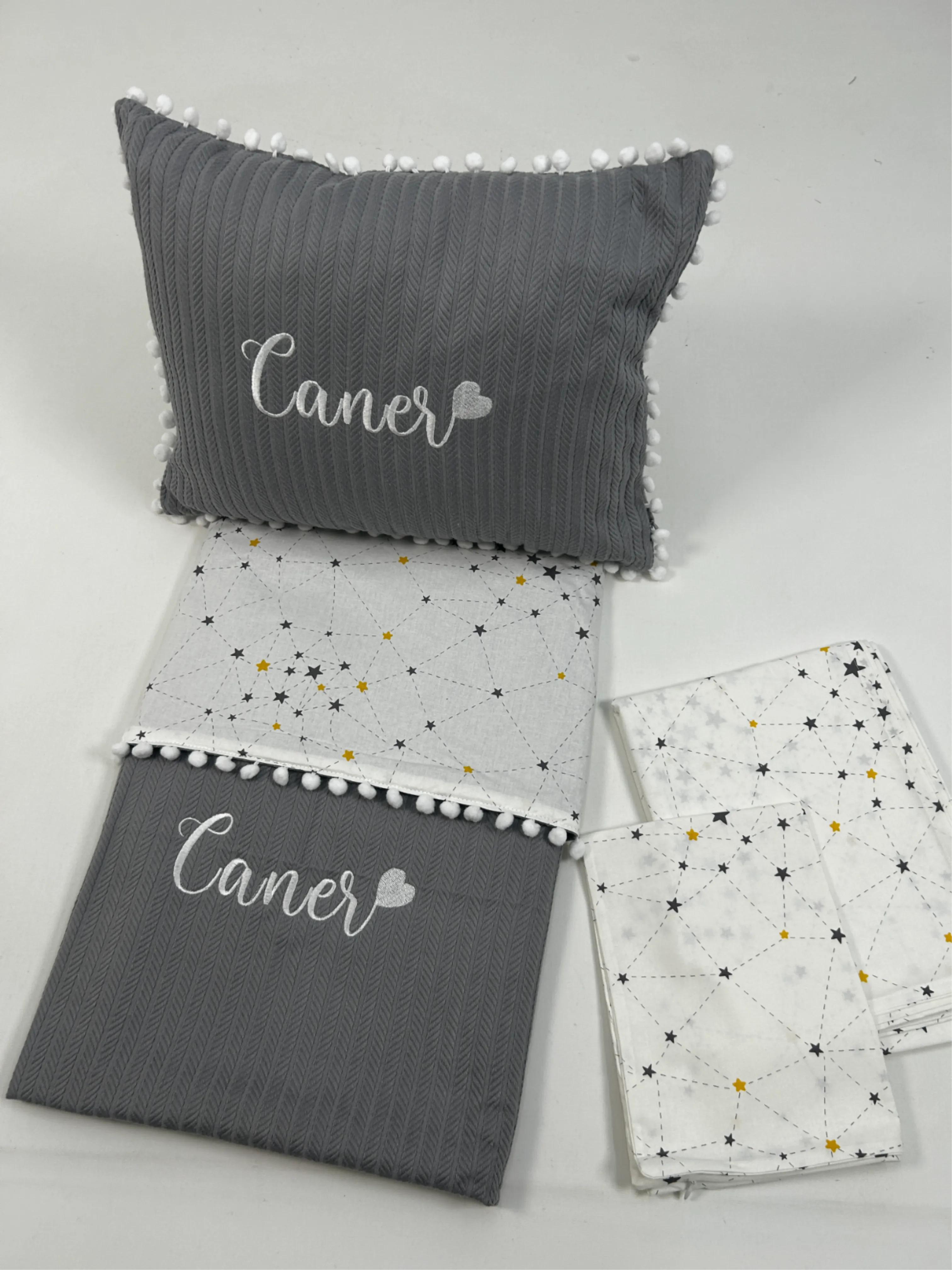 Pike takımı 4 parça gri örgü pike - gri samanyolu yıldızlı poplin