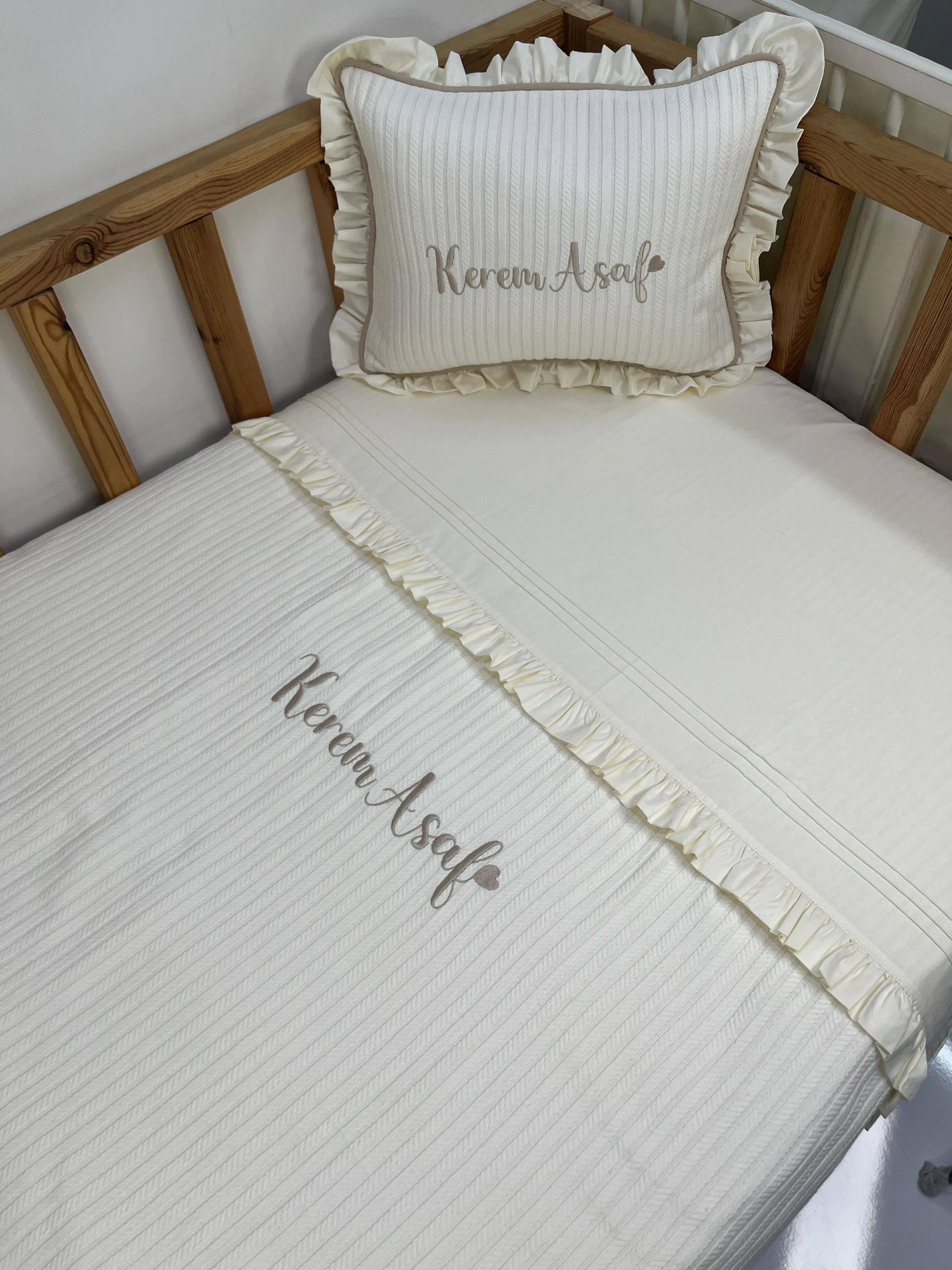 Pike takımı 4 parça krem örgü pike - krem poplin 2