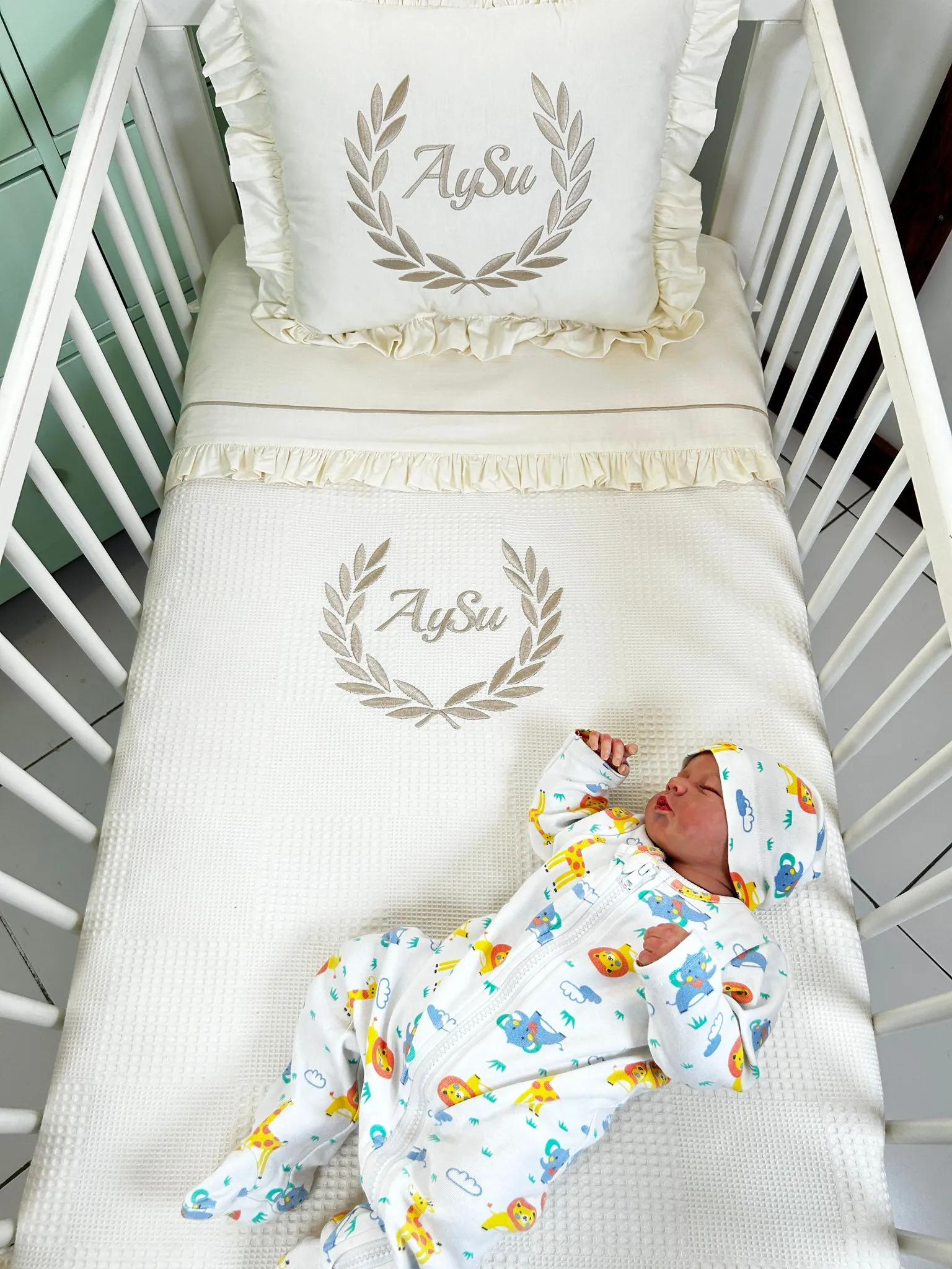 %100 pamuklu Waffle Pike ve poplin kumaşlardan üretilen beşikler pike takımı içeriği ve ölçüleri;