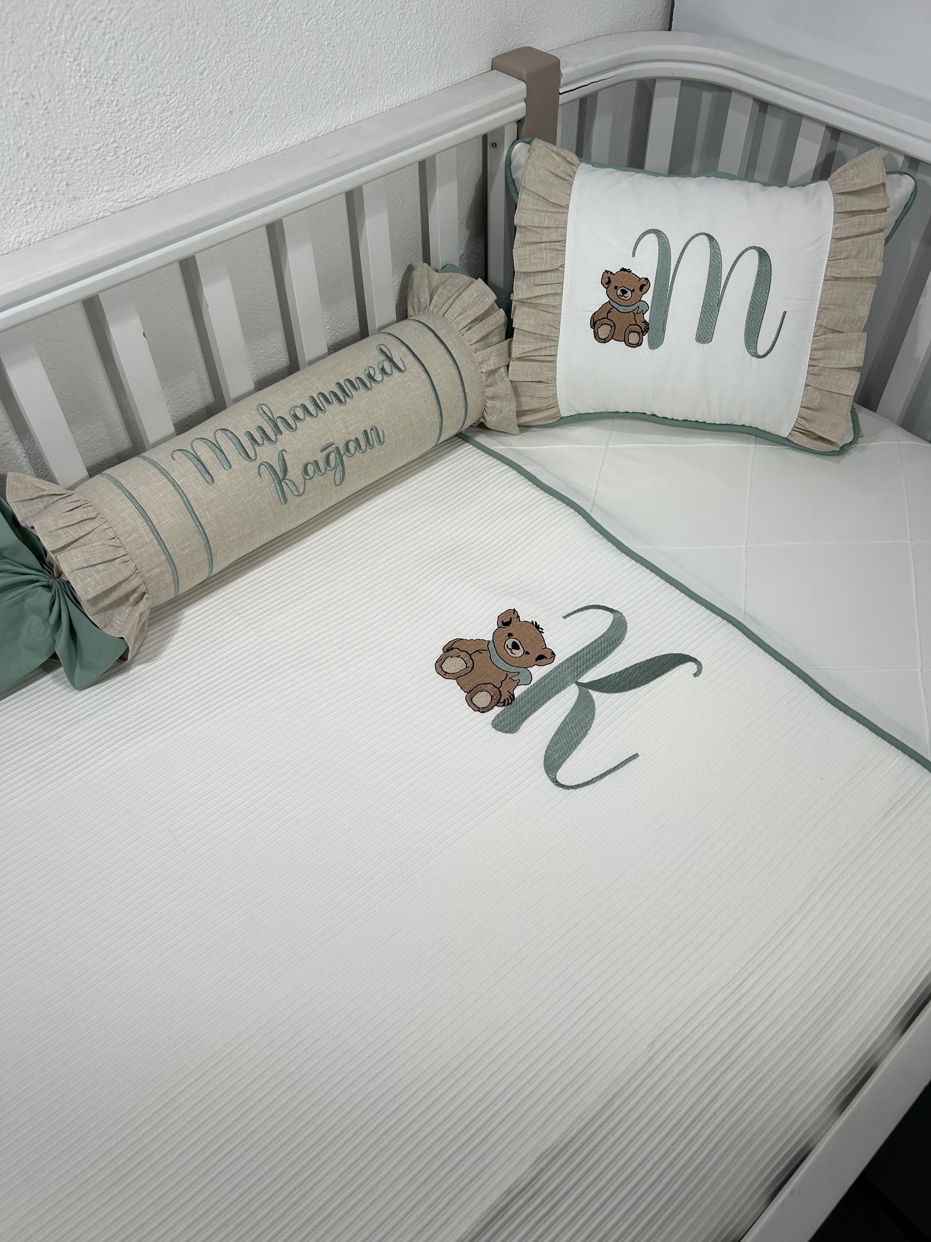 %100 pamuklu fitilli Pike ve isviçre keten kumaşlardan üretilen beşikler pike takımı içeriği ve ölçüleri;