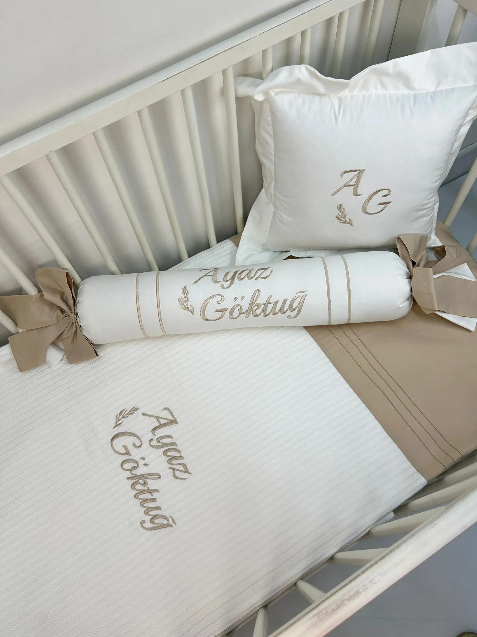 Pike takımı 5 parça beyaz örgü pike - bej poplin 2
