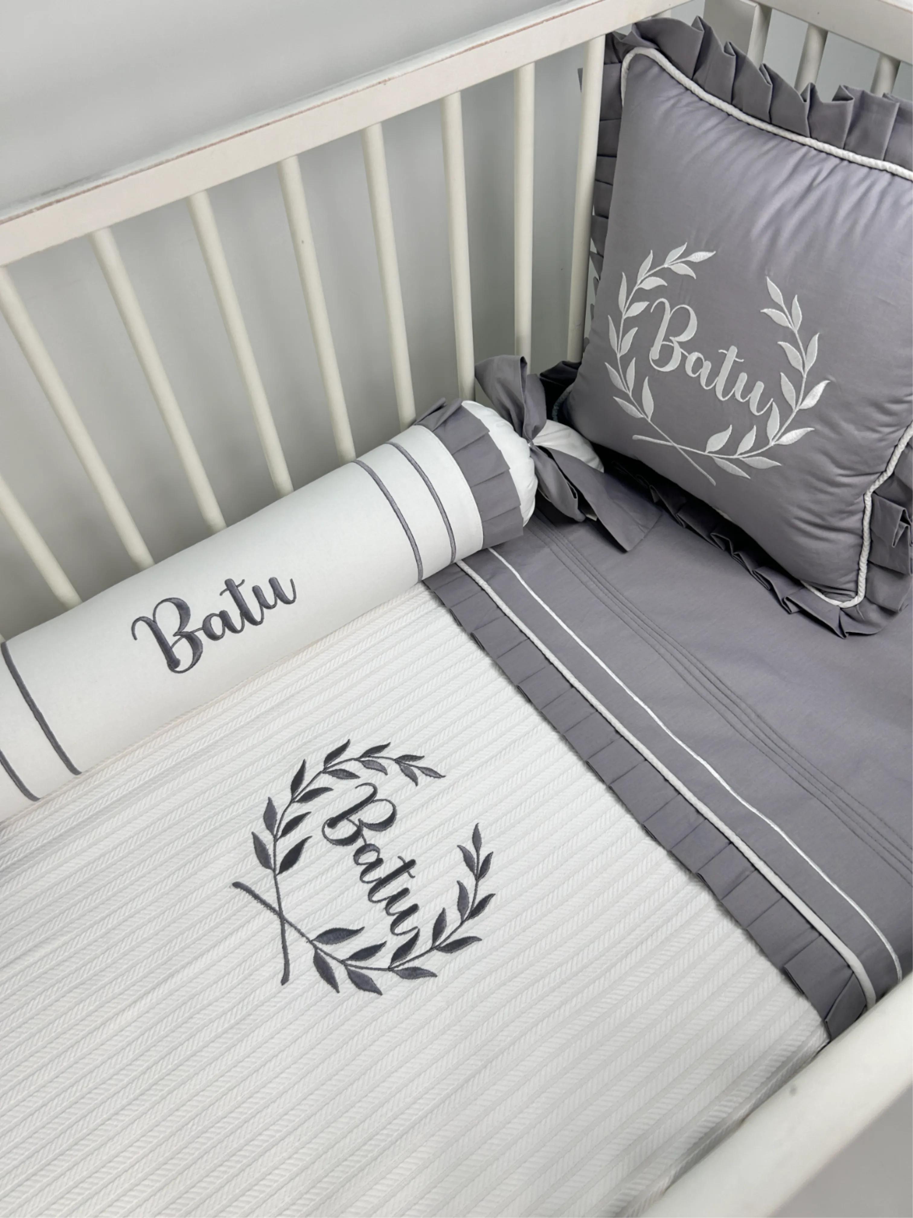 Pike takımı 5 parça beyaz örgü pike - koyu gri poplin