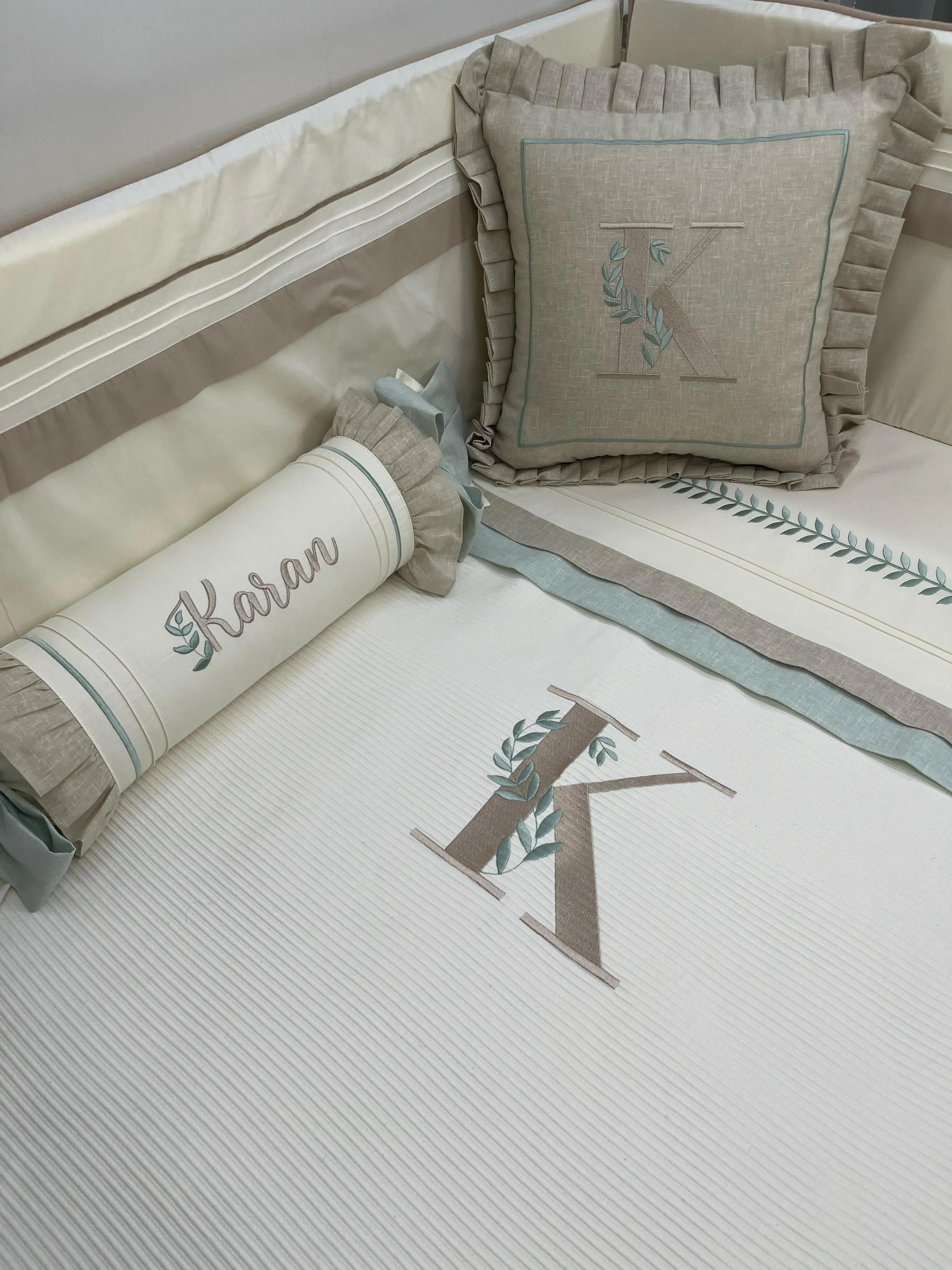 Pike takımı 5 parça krem fitilli pike - bej isviçre keten 1