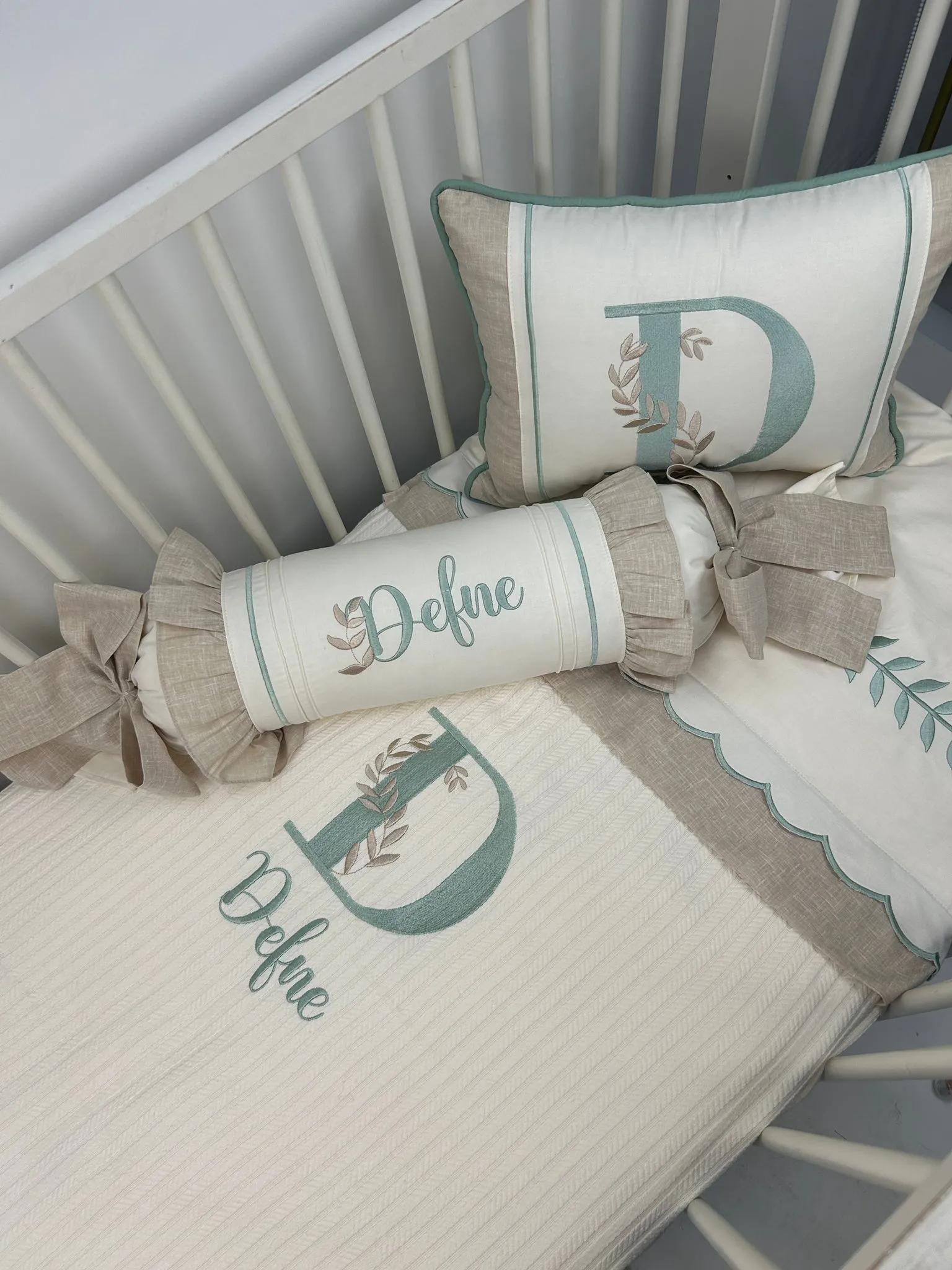 • İsim ve büyük harf deseni işlemeli , yaprak motifi işlemeli , dalga desen pikolu ve  nervürlü Pike (yatak ölçünüze göre hazırlanır)