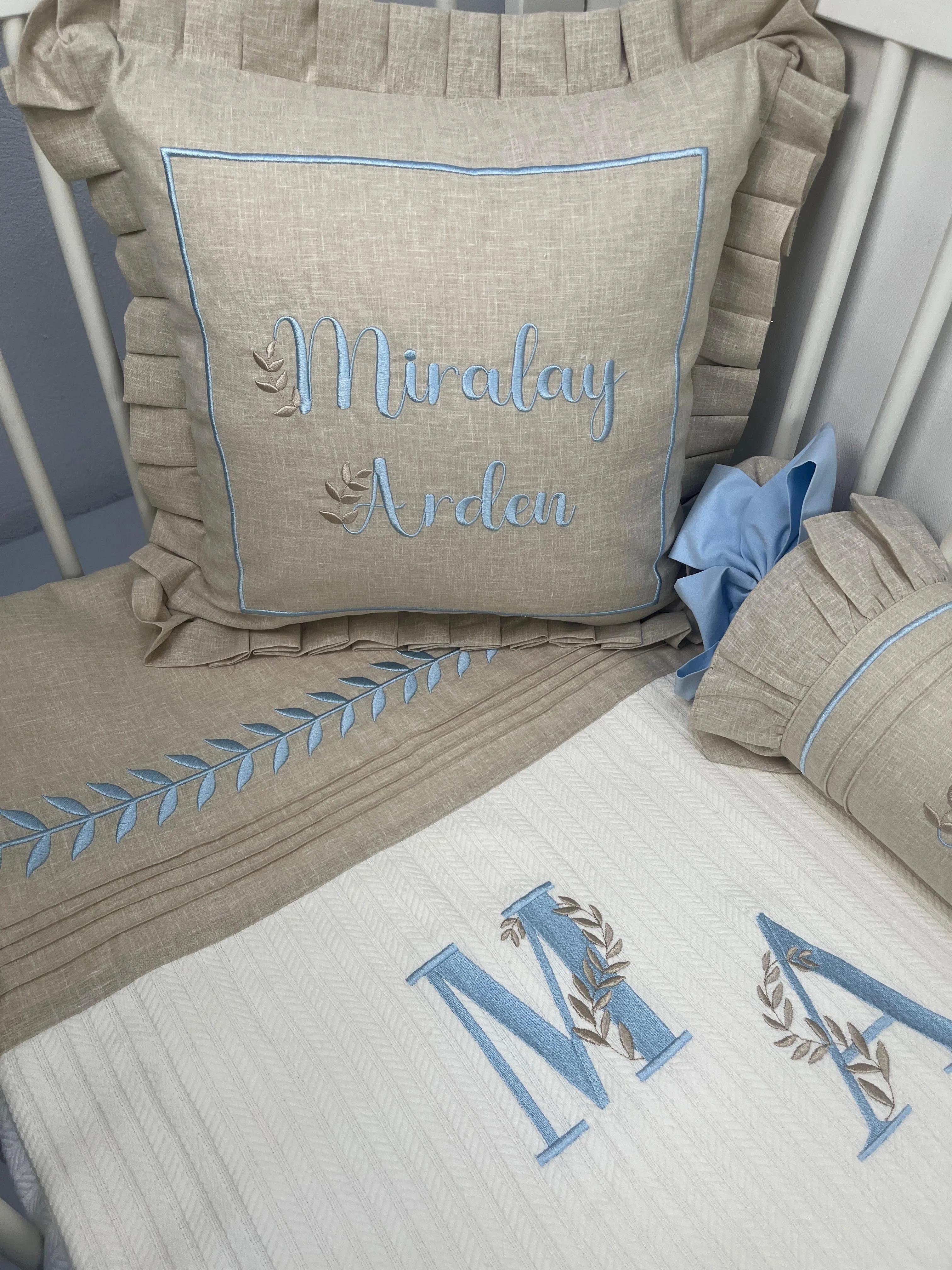 Pike takımı 5 parça krem örgü pike - bej isviçre keteni 19