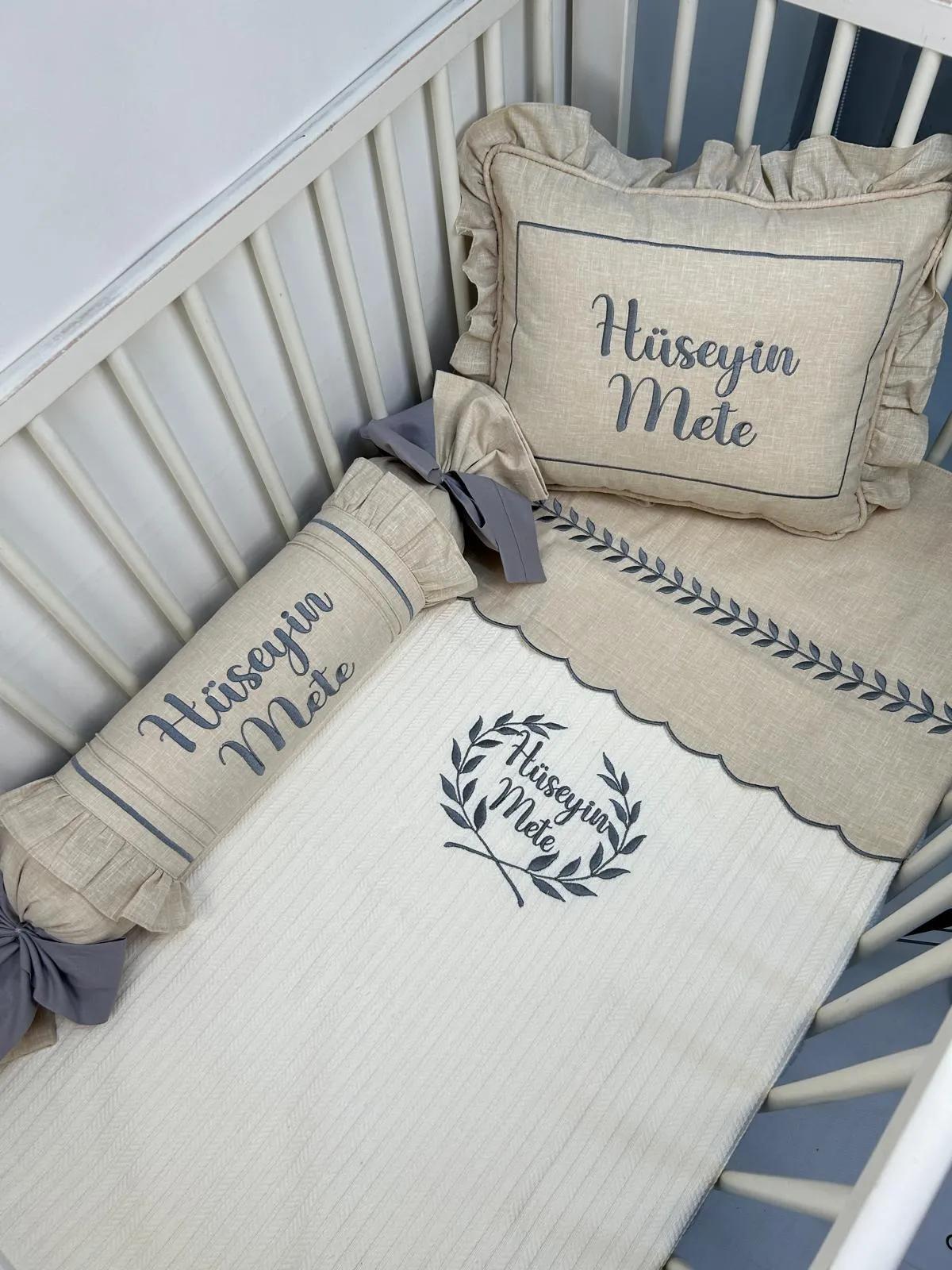 Pike takımı 5 parça krem örgü pike - bej isviçre keteni 25
