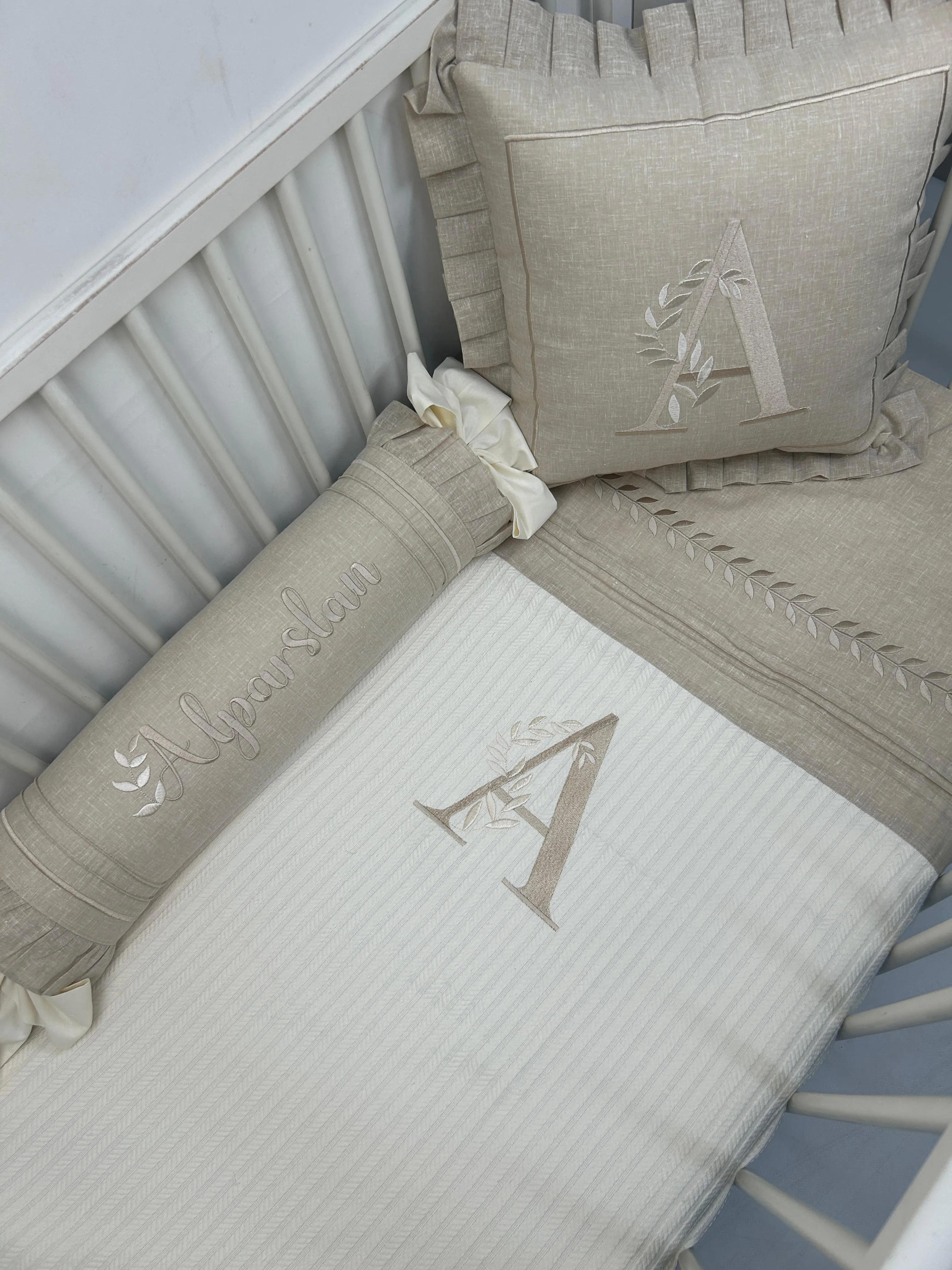 Pike takımı 5 parça krem örgü pike - bej isviçre keteni 4