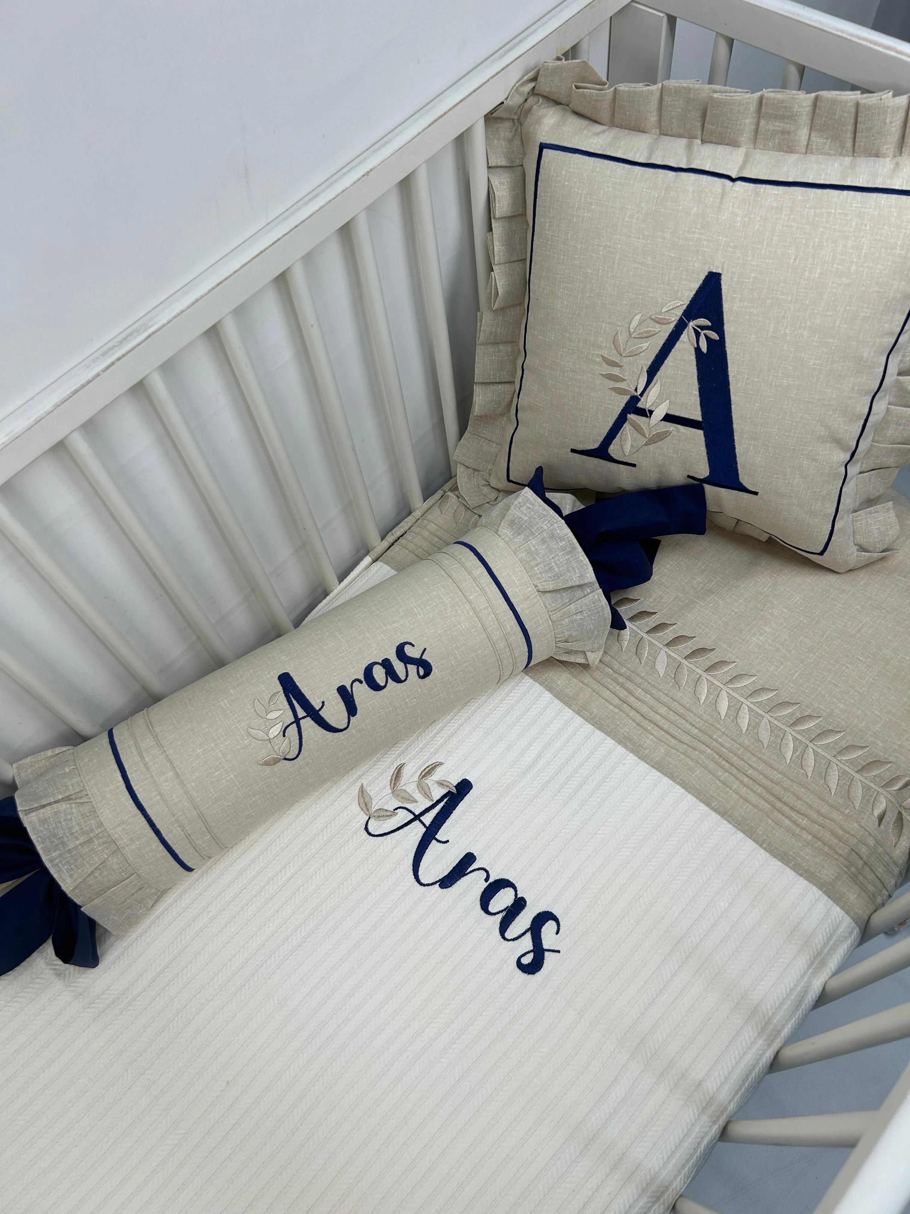 Pike takımı 5 parça krem örgü pike - bej isviçre keteni 5
