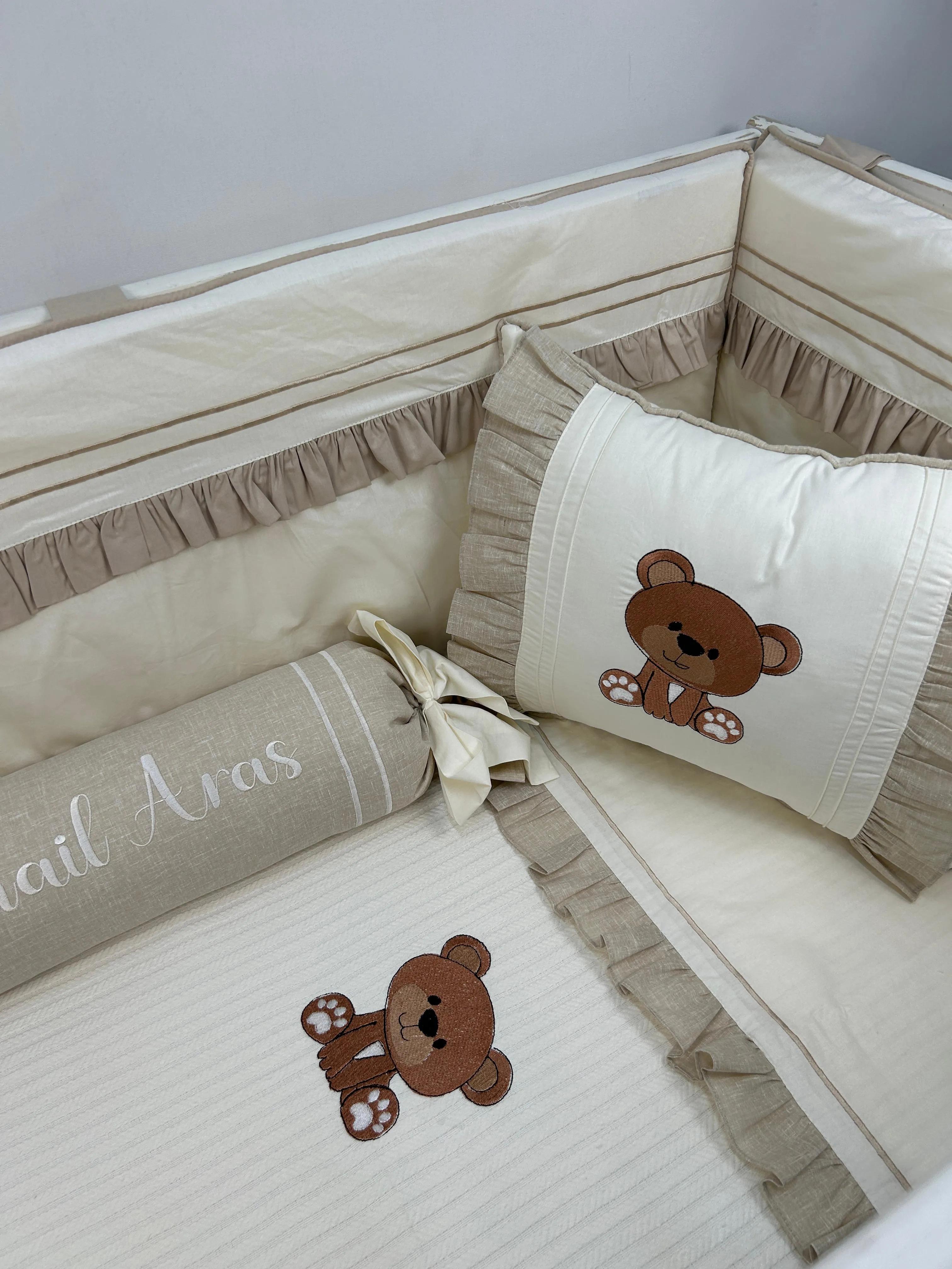 Pike takımı 5 parça krem örgü pike - bej isviçre keteni 8