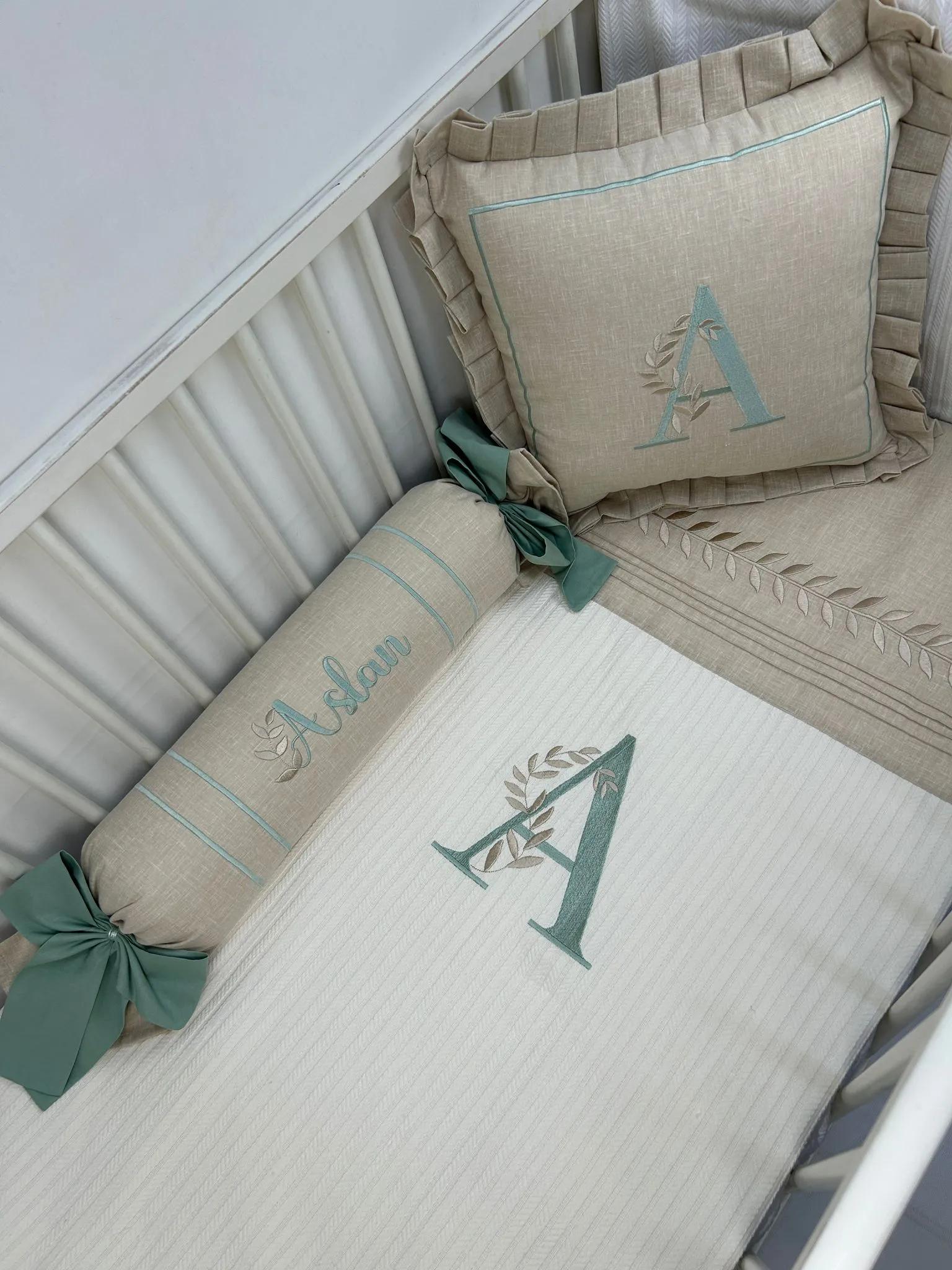 Pike takımı 5 parça krem örgü pike - bej isviçre keteni 9