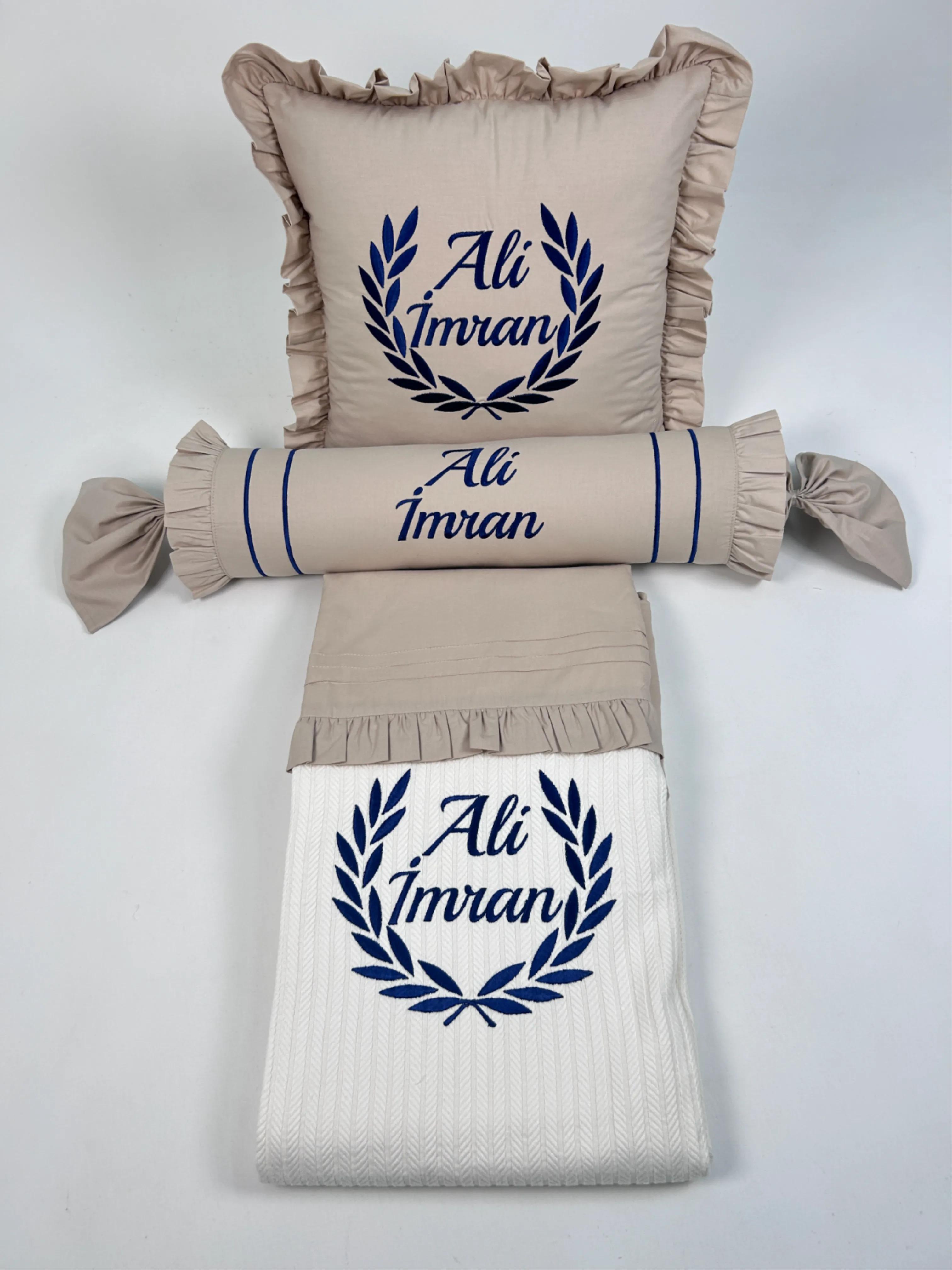 Pike takımı 5 parça krem örgü pike - bej poplin 5