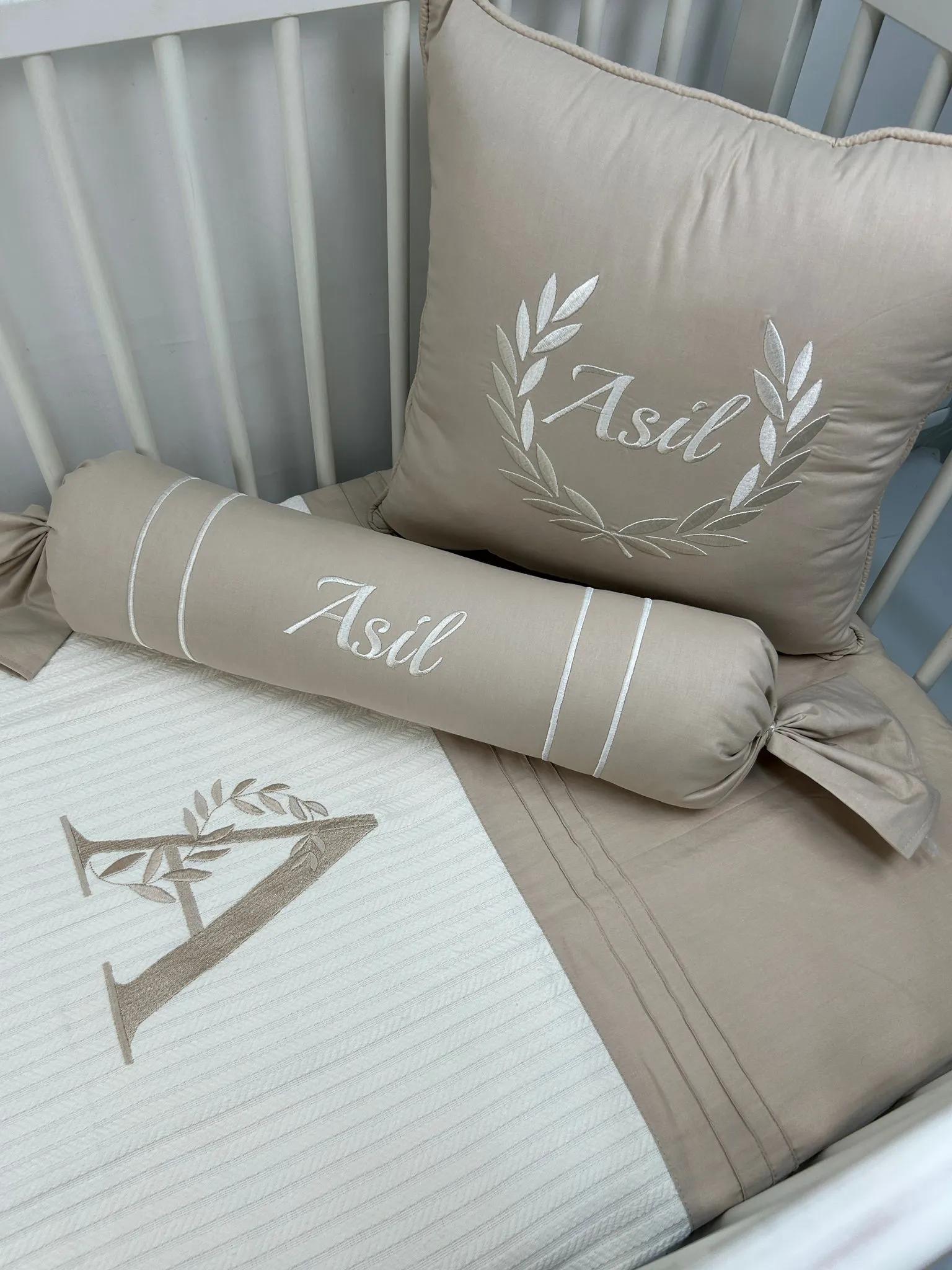Pike takımı 5 parça krem örgü pike - bej poplin kumaş