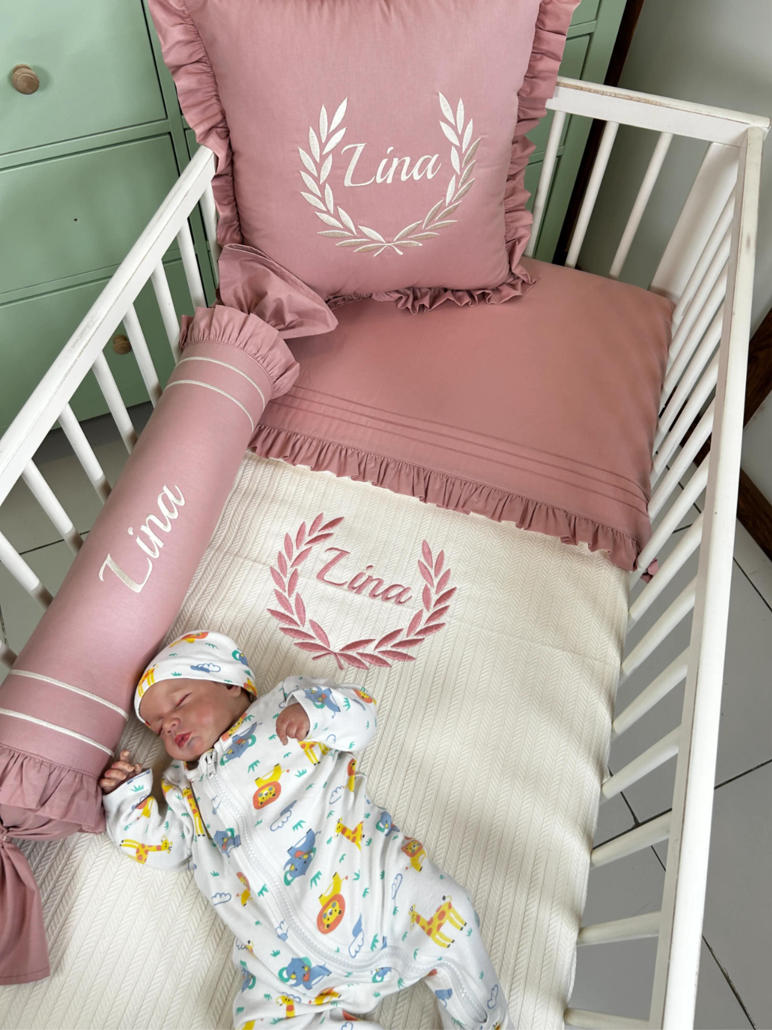 Pike takımı 5 parça krem örgü pike - gül kurusu poplin