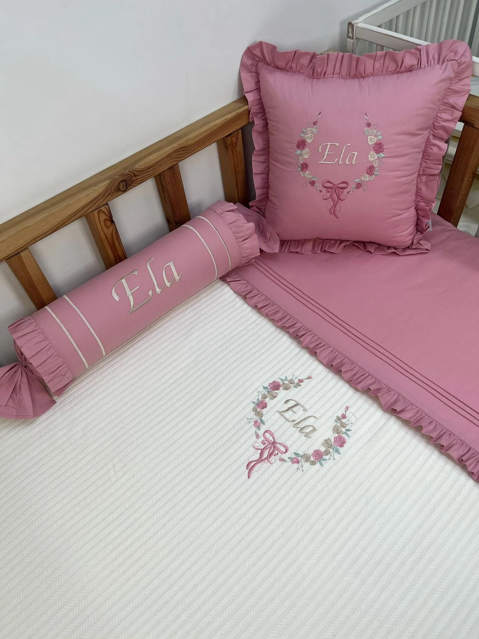 Pike takımı 5 parça krem örgü pike - gül kurusu poplin 4