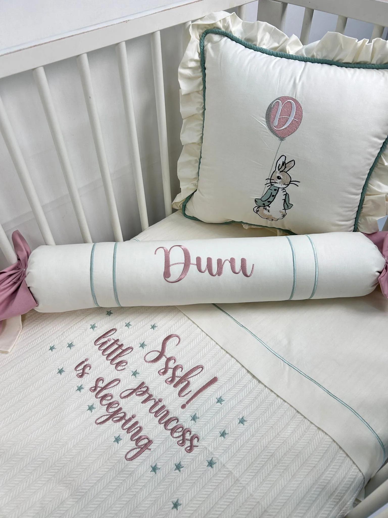 Pike takımı 5 parça krem örgü pike - krem poplin 5