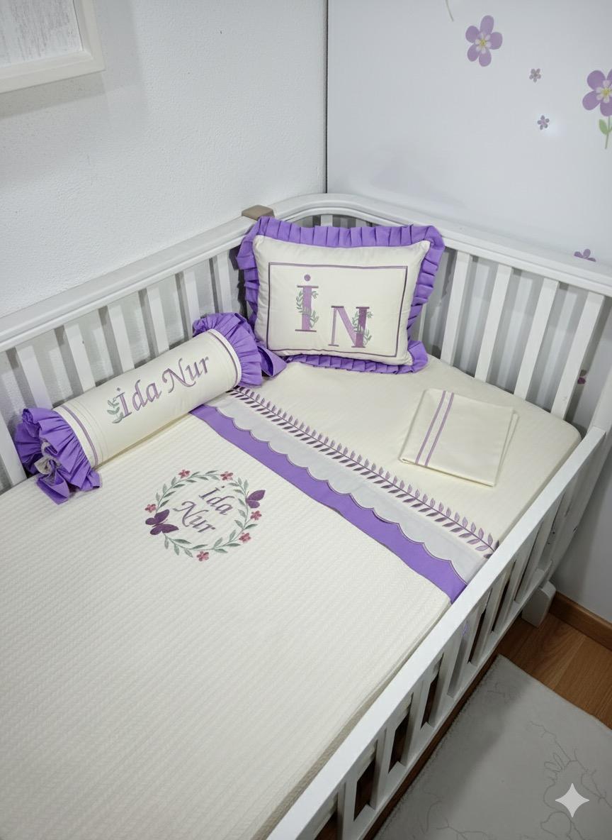 Pike takımı 5 parça krem örgü pike - lila poplin