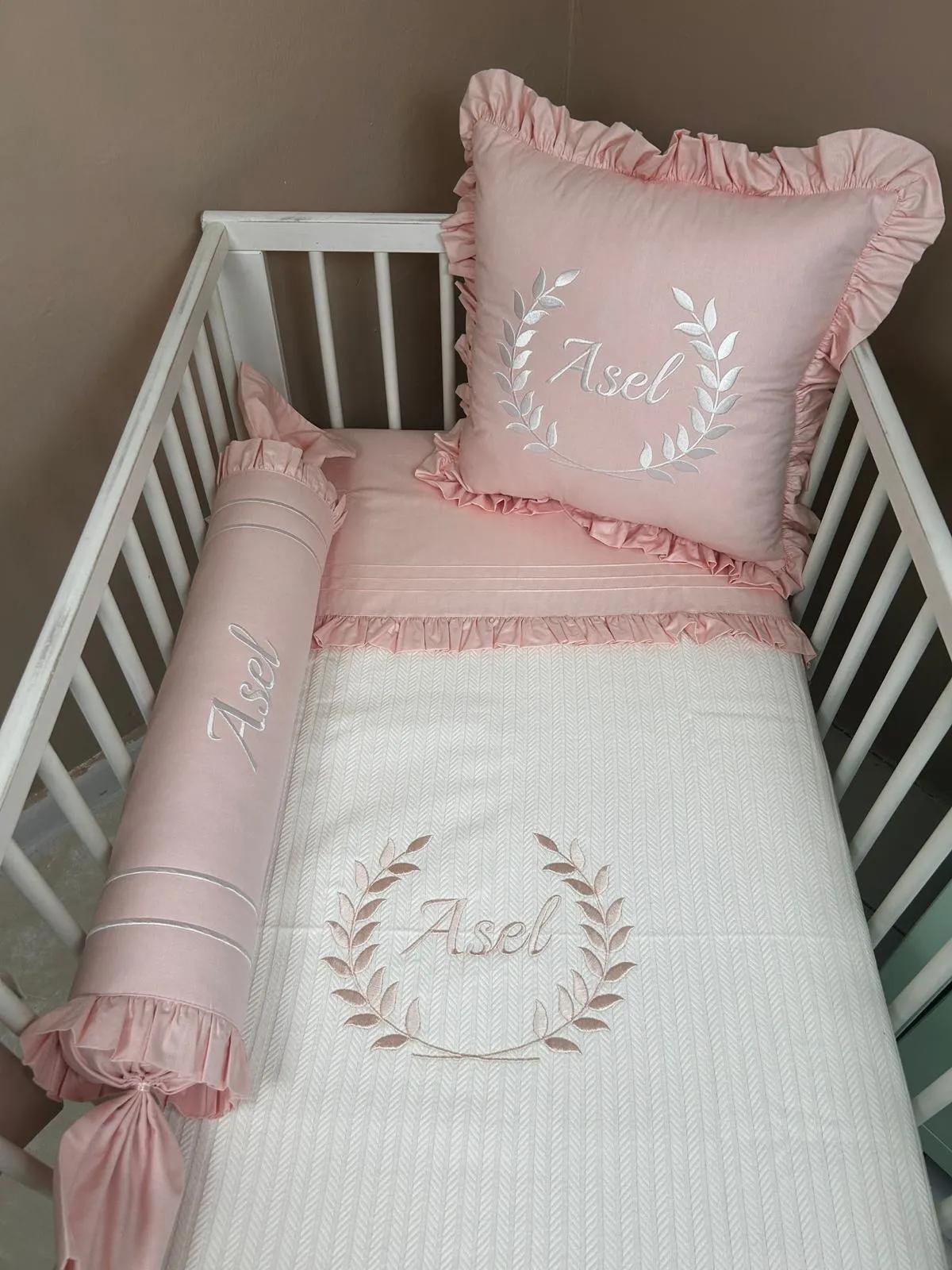 Pike takımı 5 parça krem örgü pike - somon poplin 3
