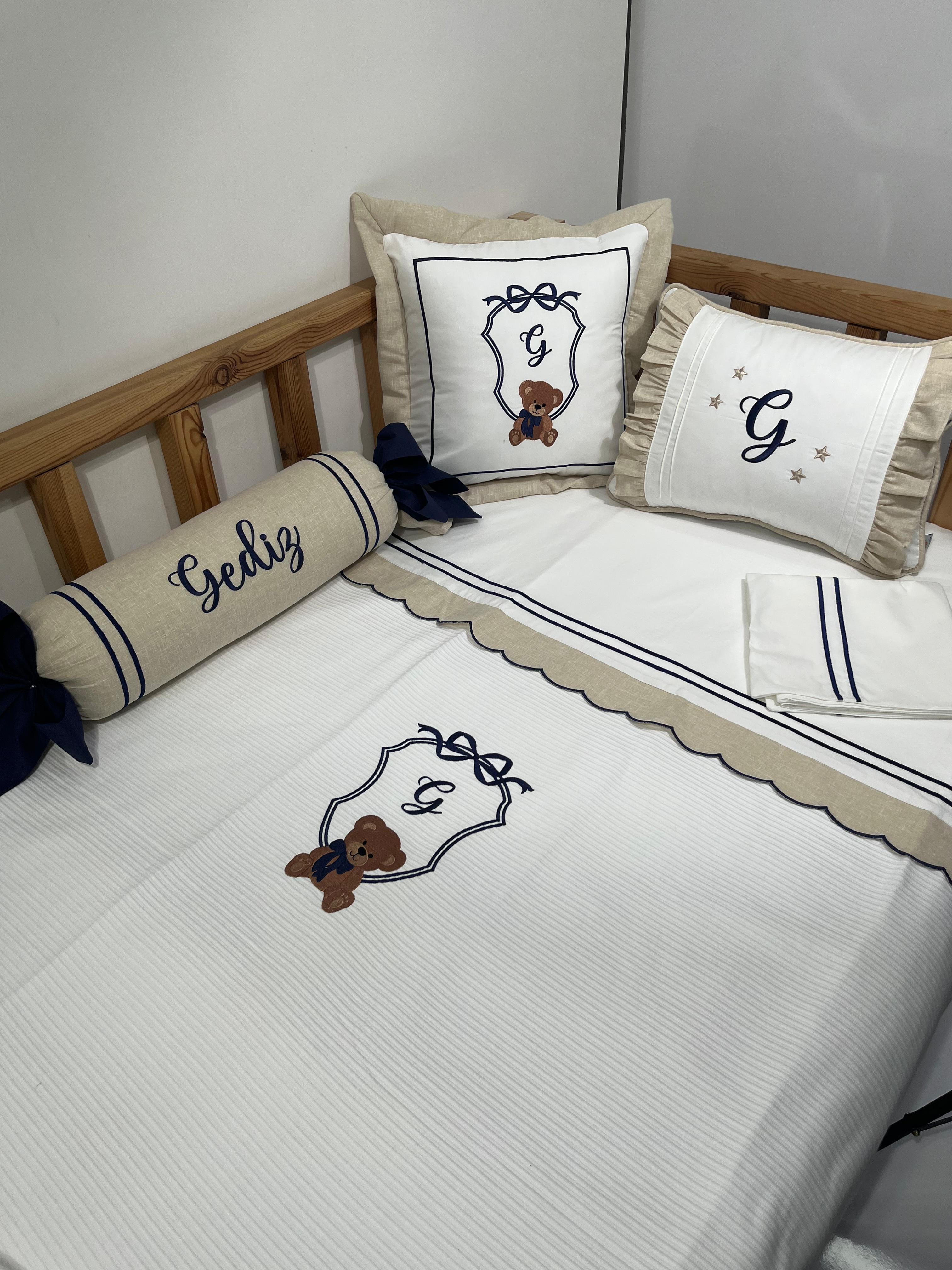 %100 pamuklu fitilli Pike ve isviçre keten kumaşlardan üretilen beşikler pike takımı içeriği ve ölçüleri;