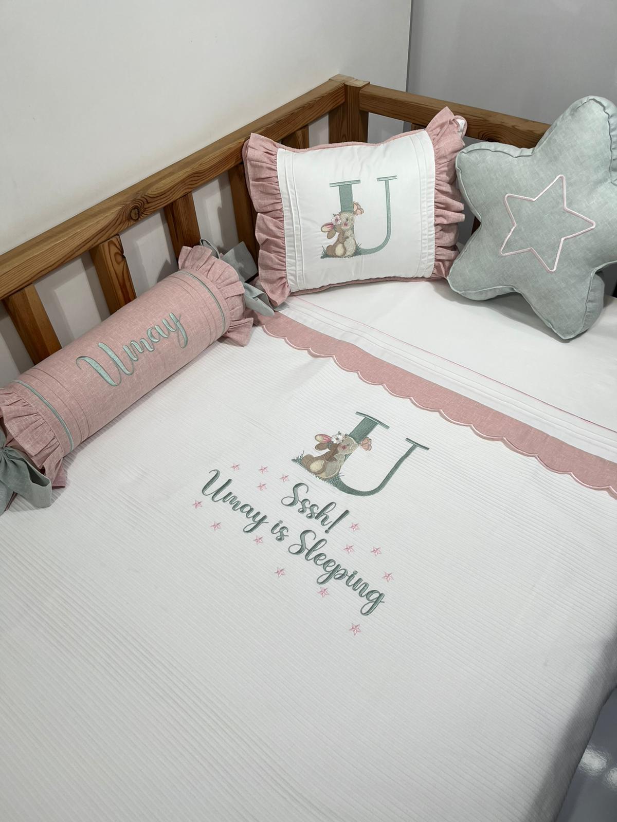 %100 pamuklu fitilli Pike ve isviçre keten kumaşlardan üretilen beşikler pike takımı içeriği ve ölçüleri;