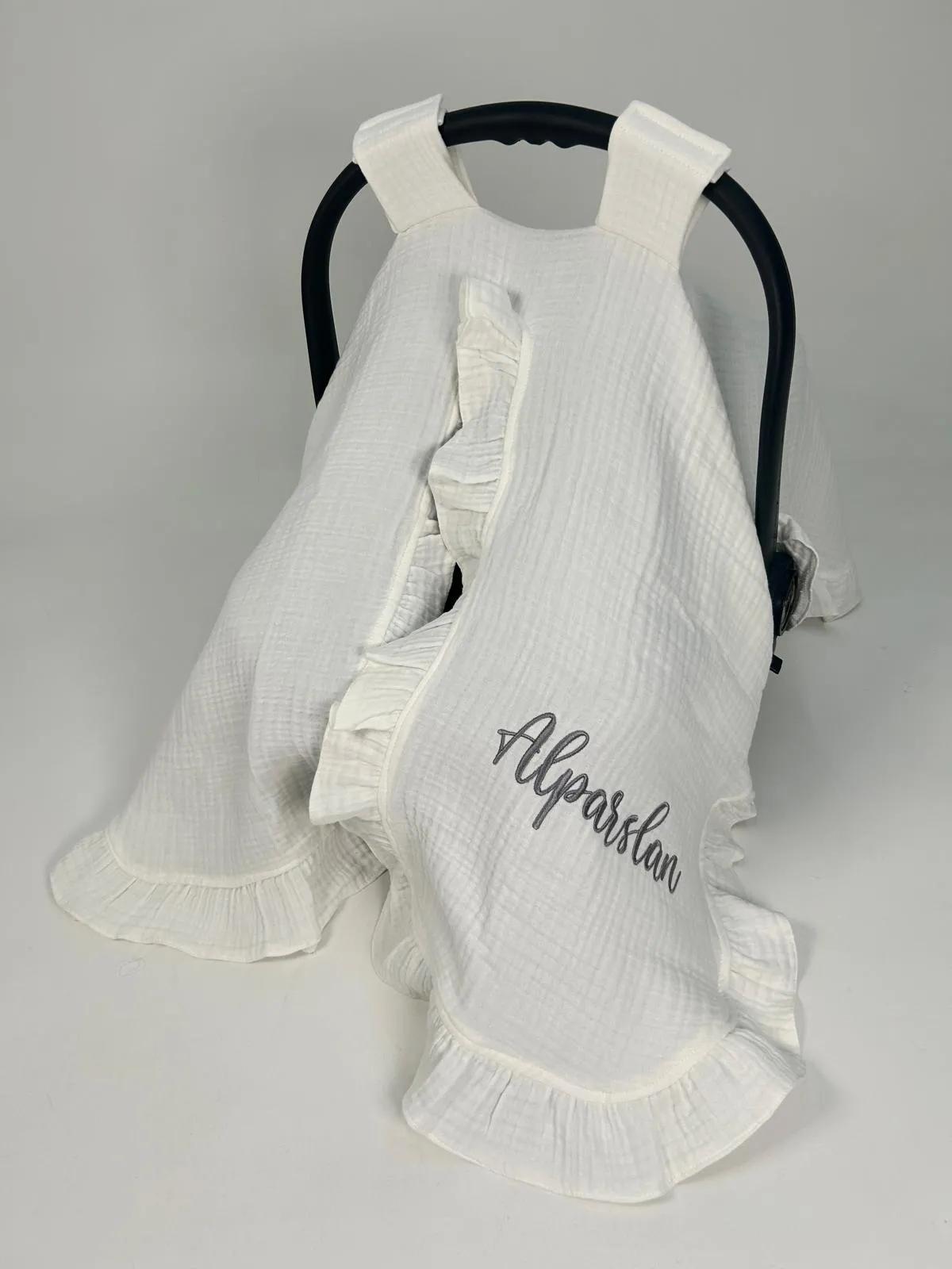 4 Kat müslin kumaştan üretilen isim işlemeli Puset Örtüsü