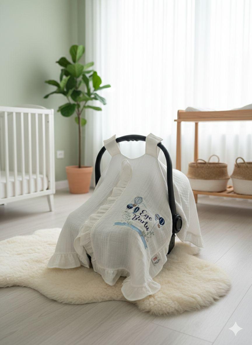 4 Kat müslin kumaştan üretilen isim işlemeli Puset Örtüsü