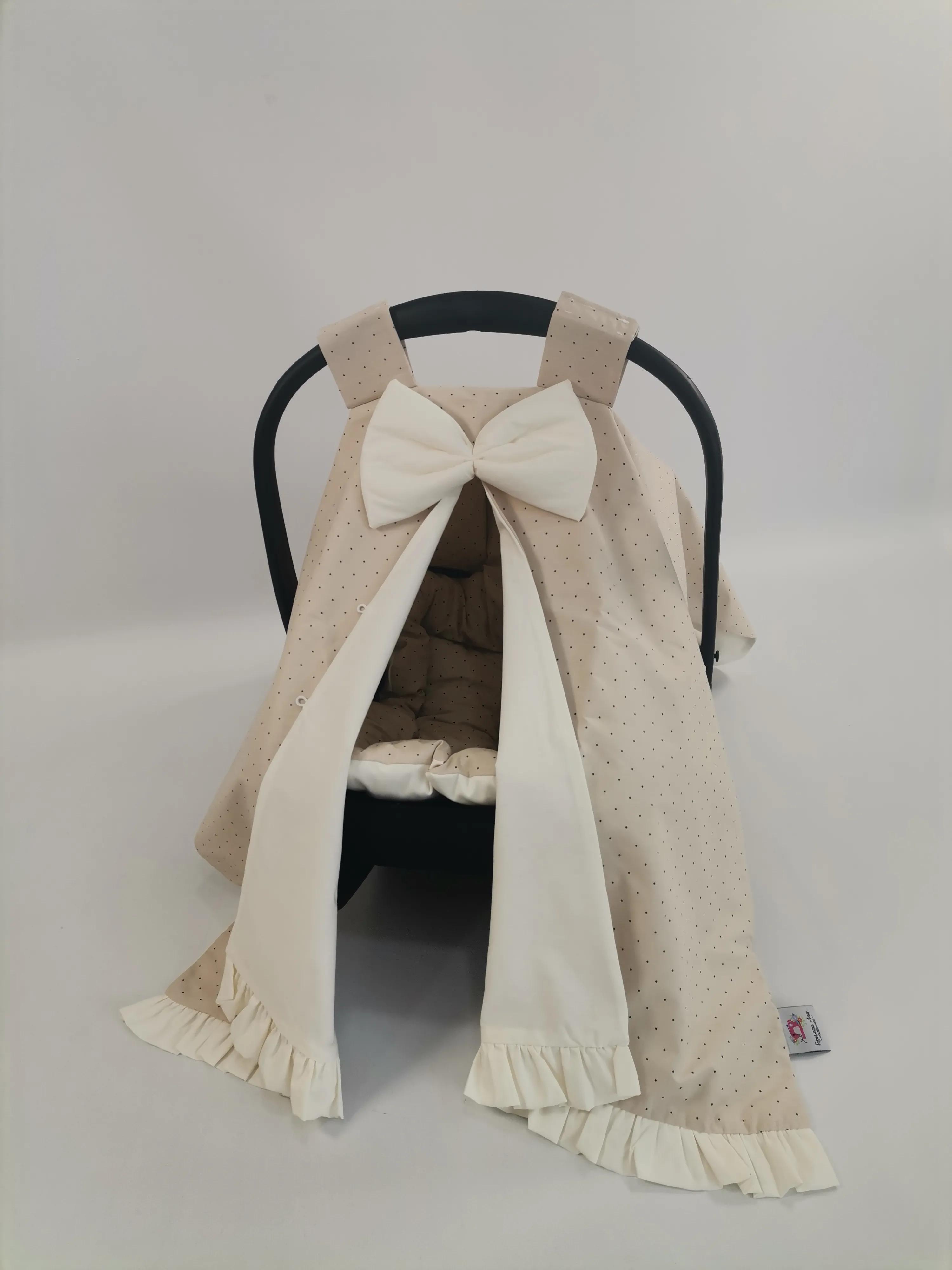 Puset örtüsü fırfırlı bej zemin üstü kahve rengi puantiyeli - krem poplin