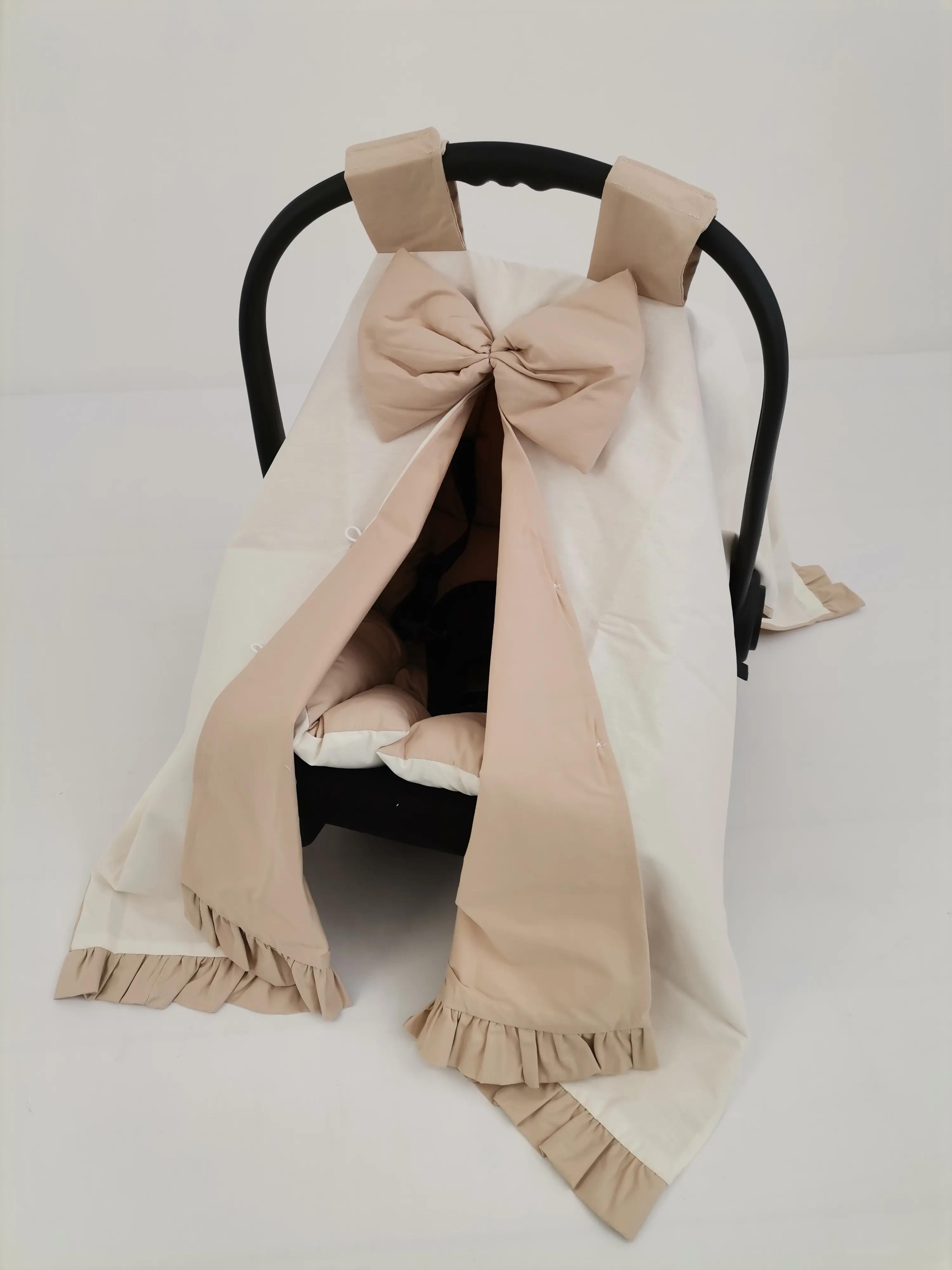 Krem ve bej Poplin kumaştan üretilen fırfır detaylı Puset Örtüsü