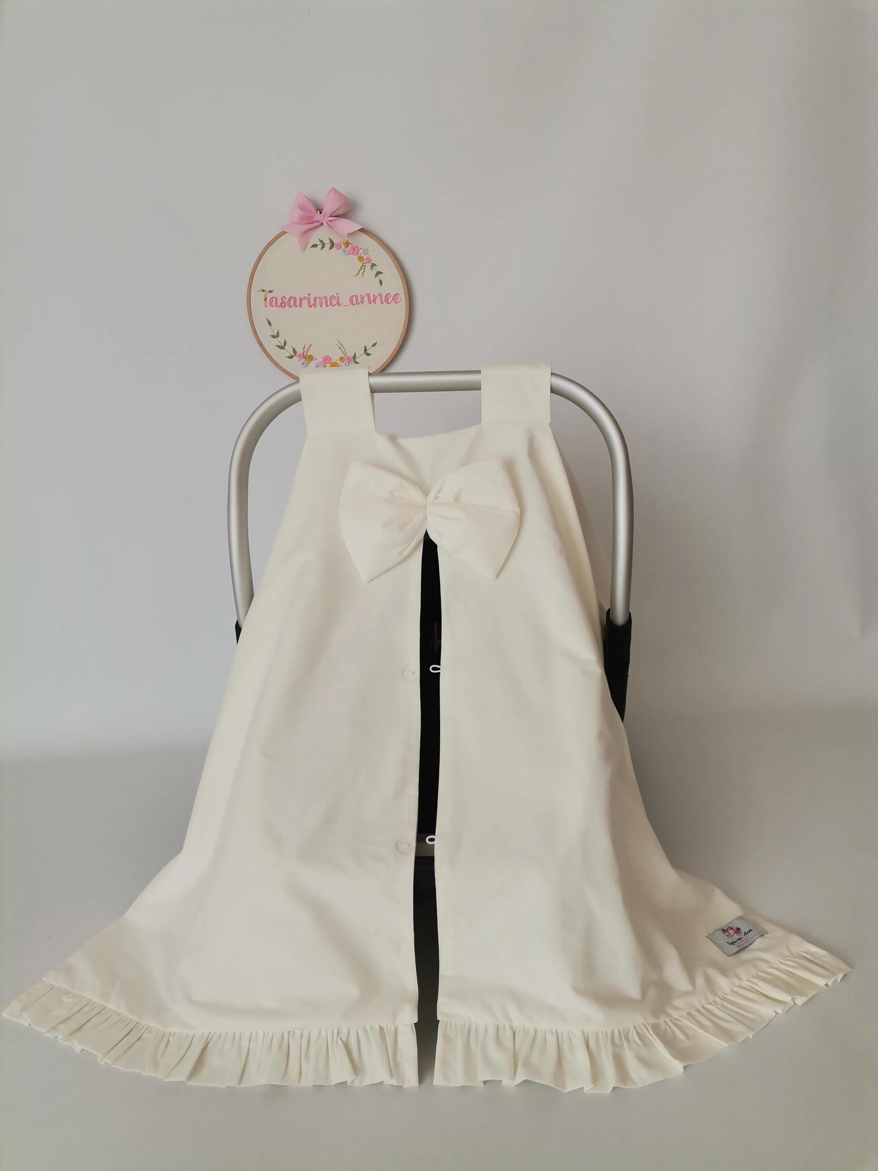 Krem Poplin kumaştan üretilen fırfır detaylı Puset Örtüsü