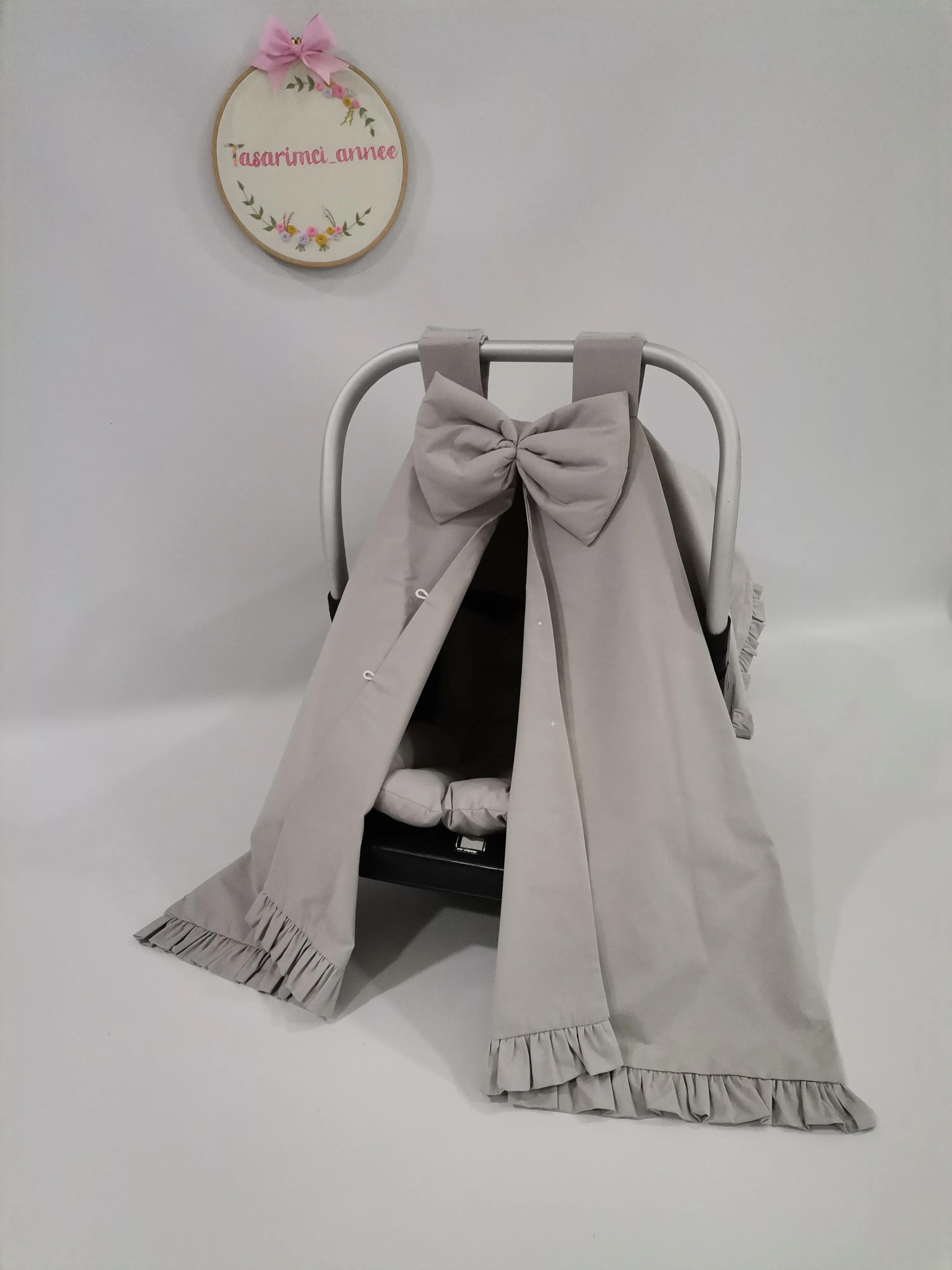 V15 GRİ Poplin kumaştan üretilen fırfır detaylı Puset Örtüsü