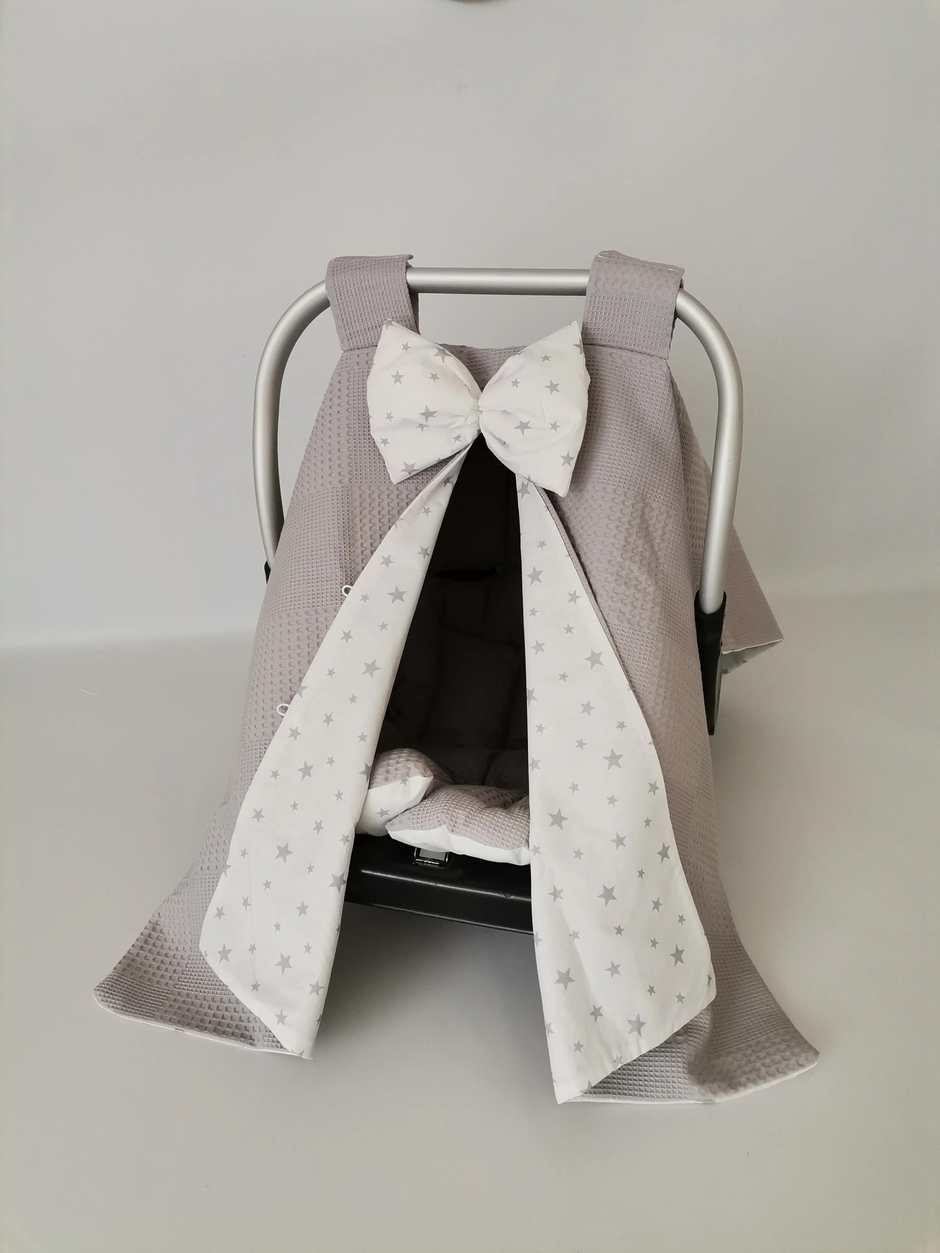 Gri waffle pike ve gri yıldızlı poplin kumaştan üretilen Puset Örtüsü