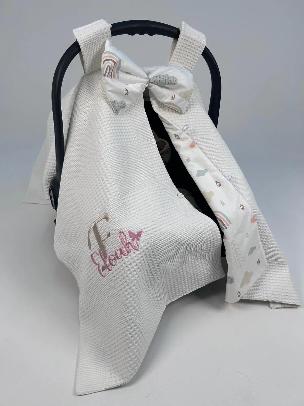 Waffle Pike ve gökkuşağı desenli Poplin kumaştan üretilen Puset Örtüsü