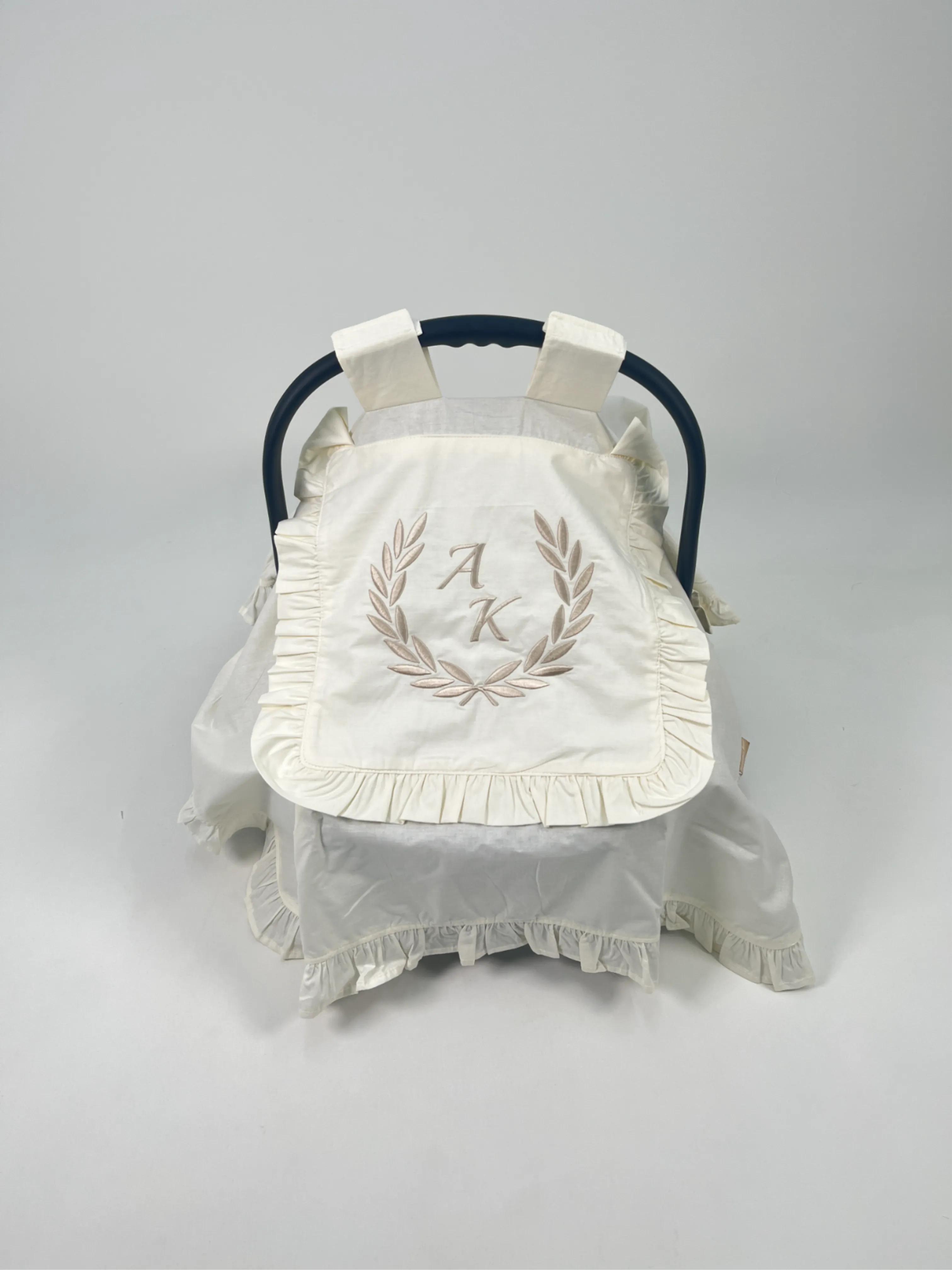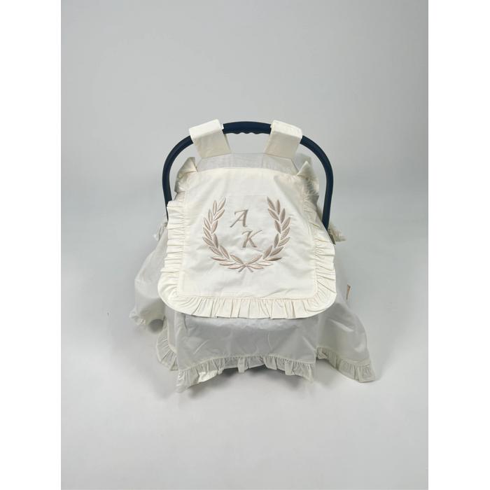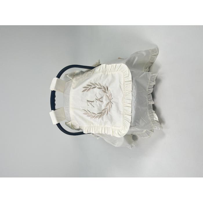Krem Poplin kumaştan üretilen tek kat, kapak ve fırfır detaylı Puset Örtüsü