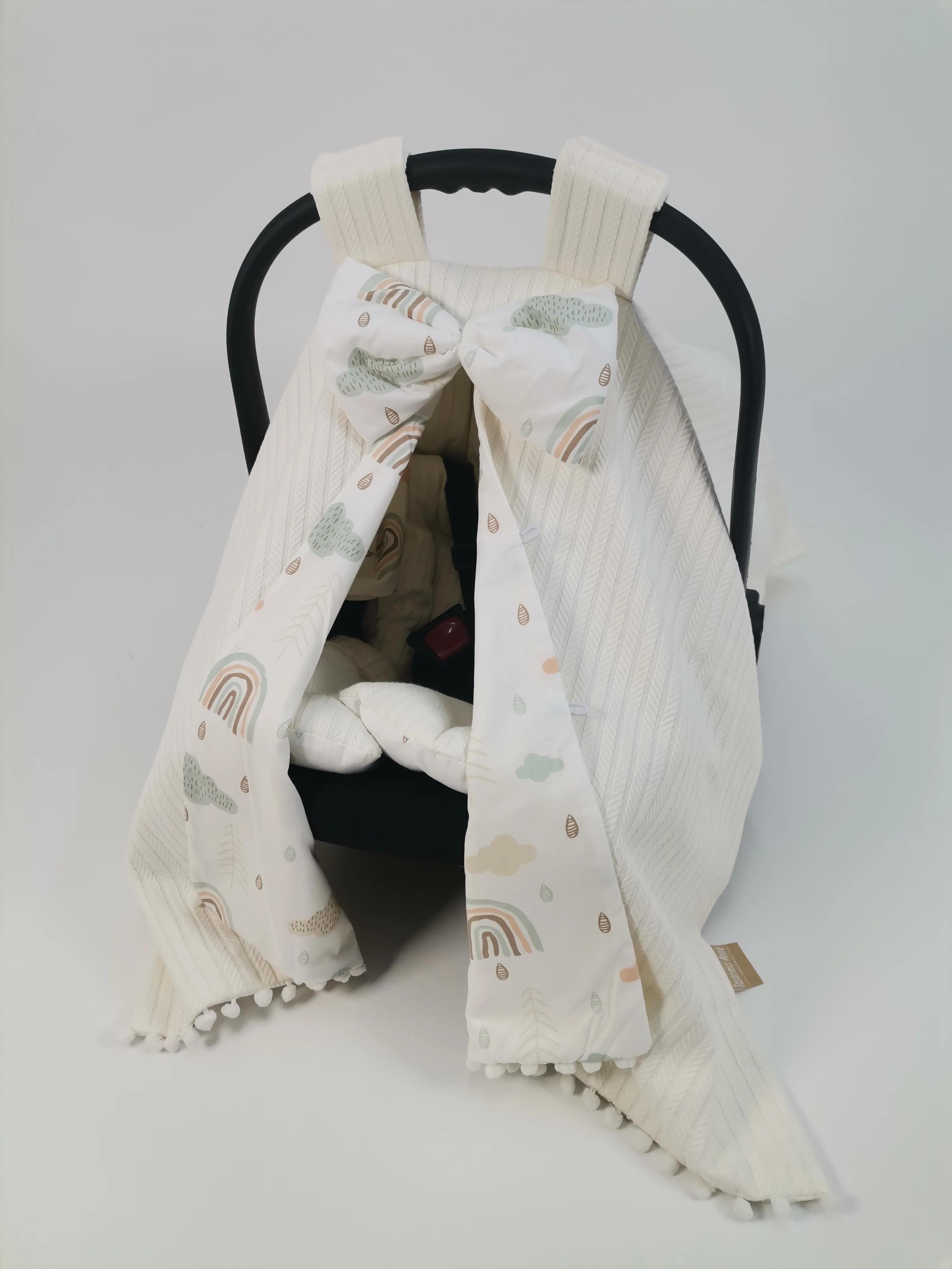 Krem Örgü Pike ve gökkuşağı desenli Poplin kumaştan üretilen puset Örtüsü