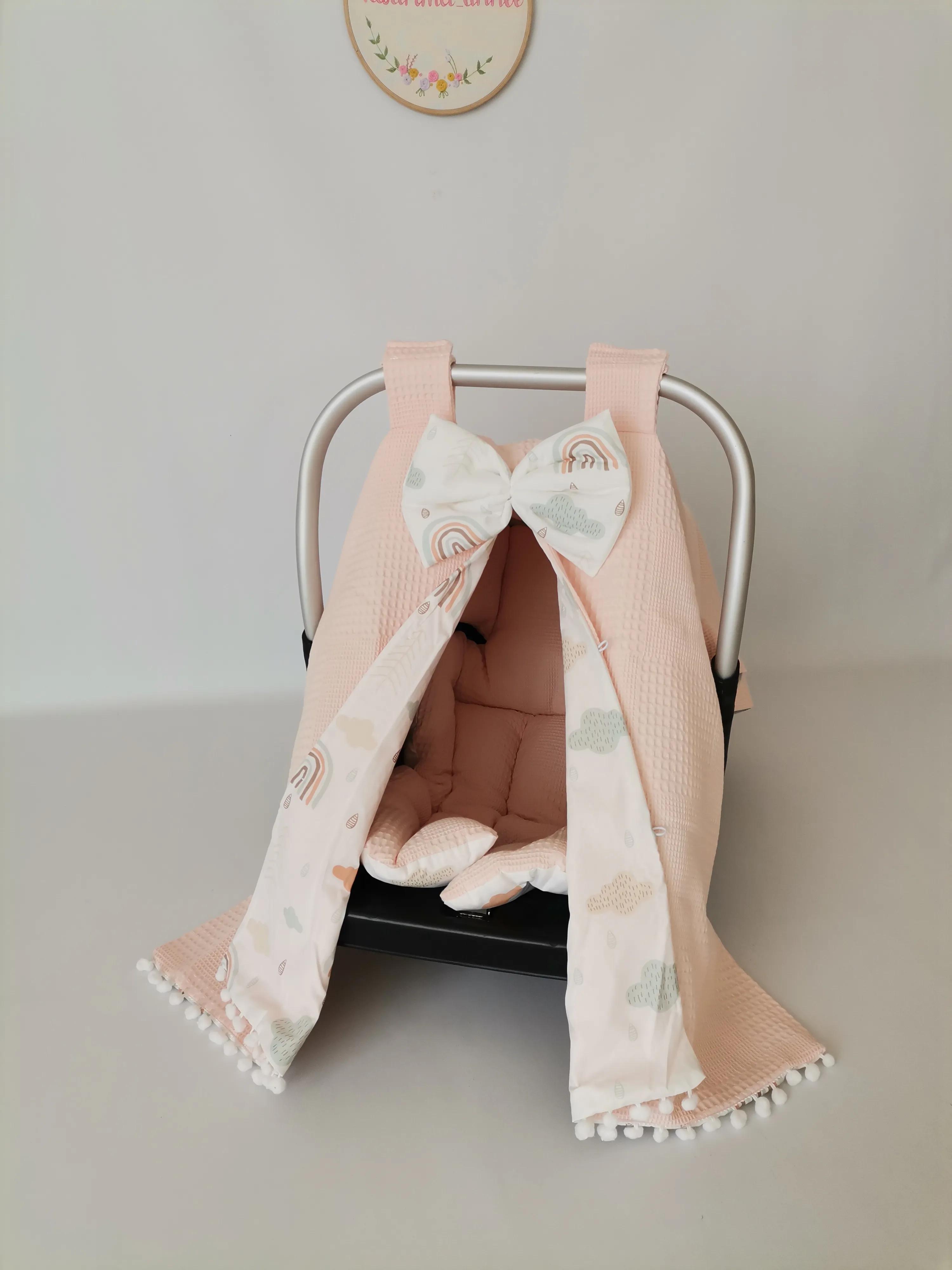 Somon klasik (waffle) Pike ve gokkusaklı poplin poplin kumaştan üretilen Puset Örtüsü