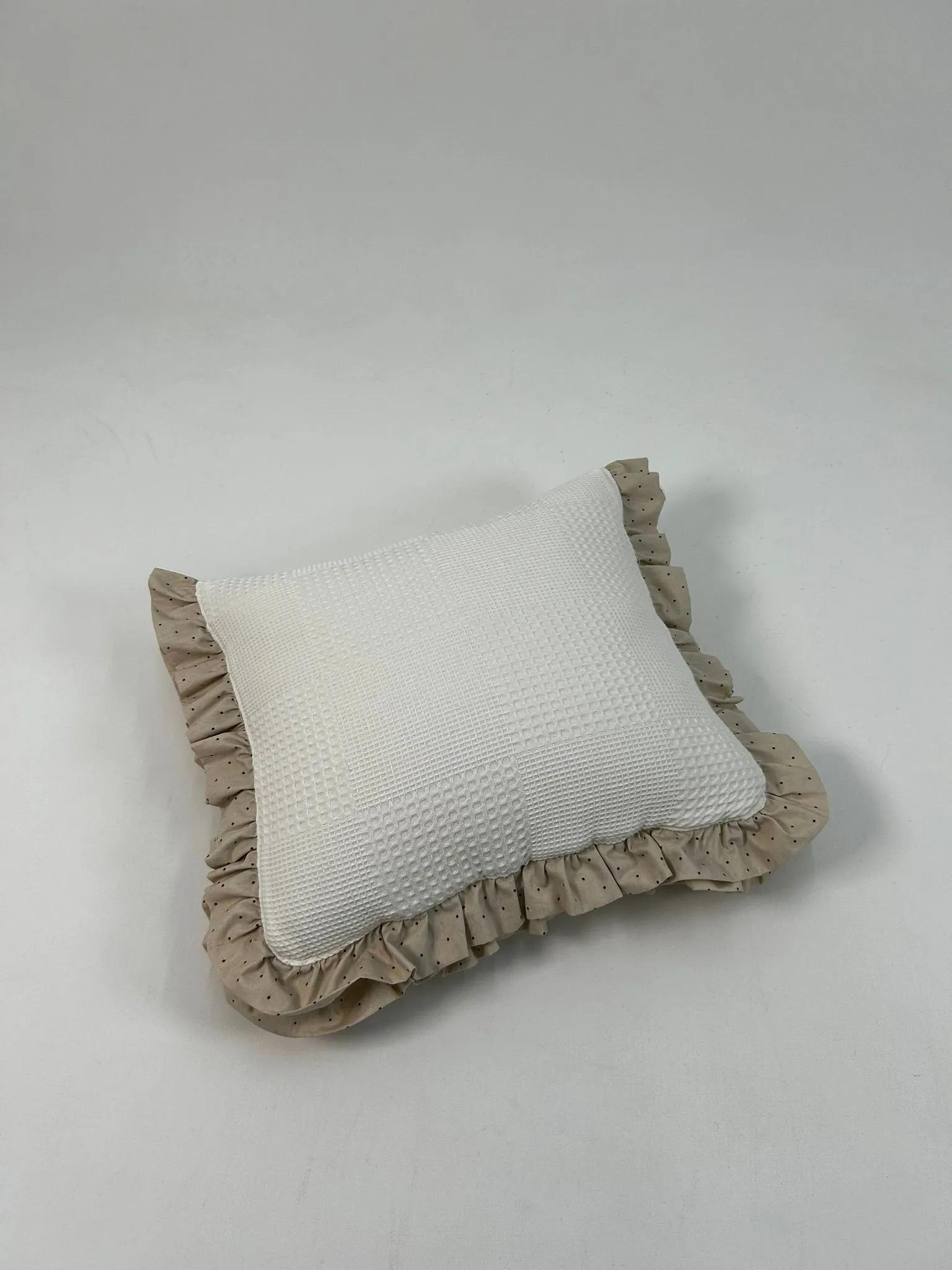 Sürpriz yastık krem waffle pike - bej zemin üstü kahve rengi puantiyeli poplin