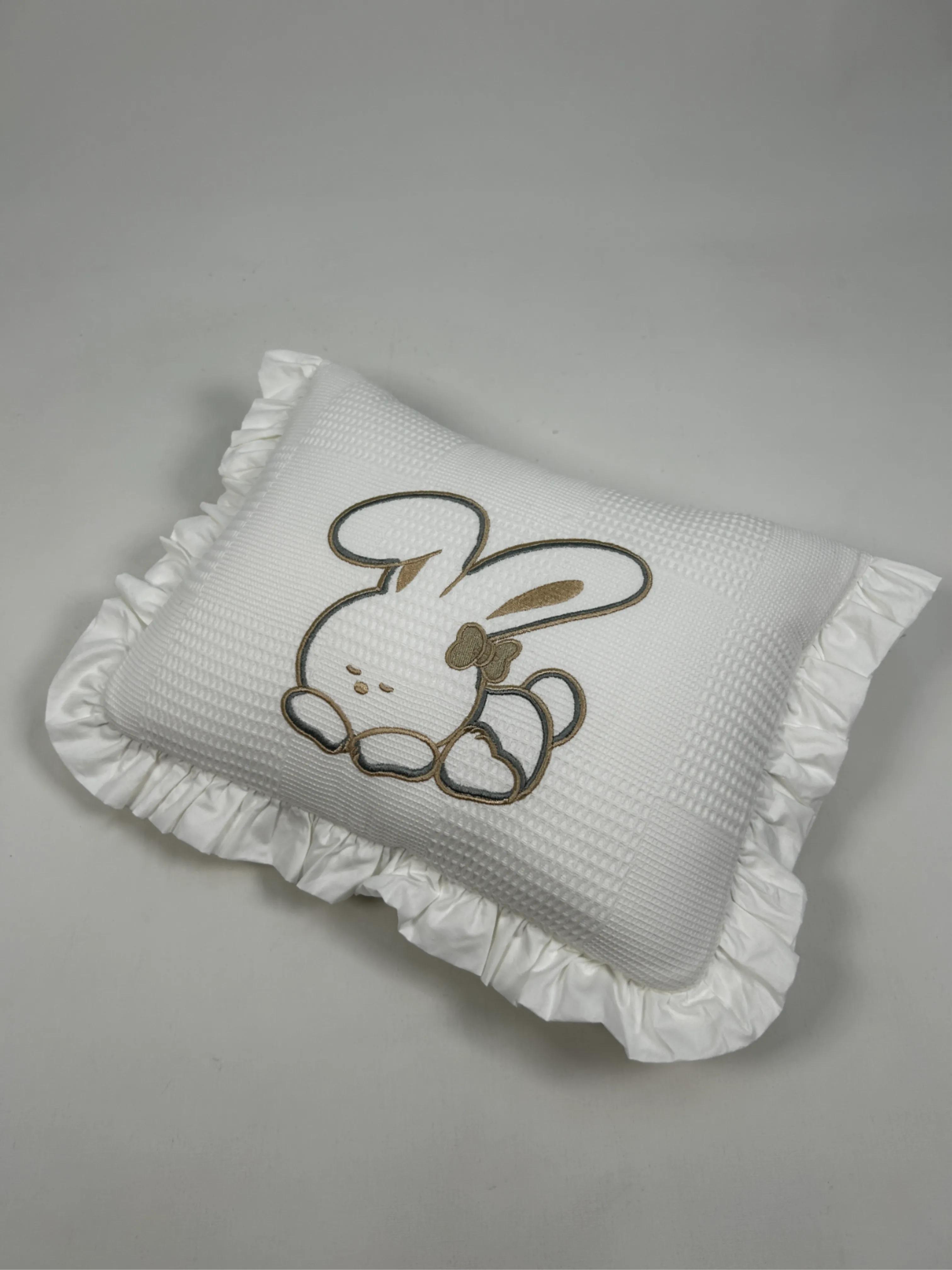 Sürpriz yastık tavşan işlemeli beyaz waffle pike - beyaz poplin
