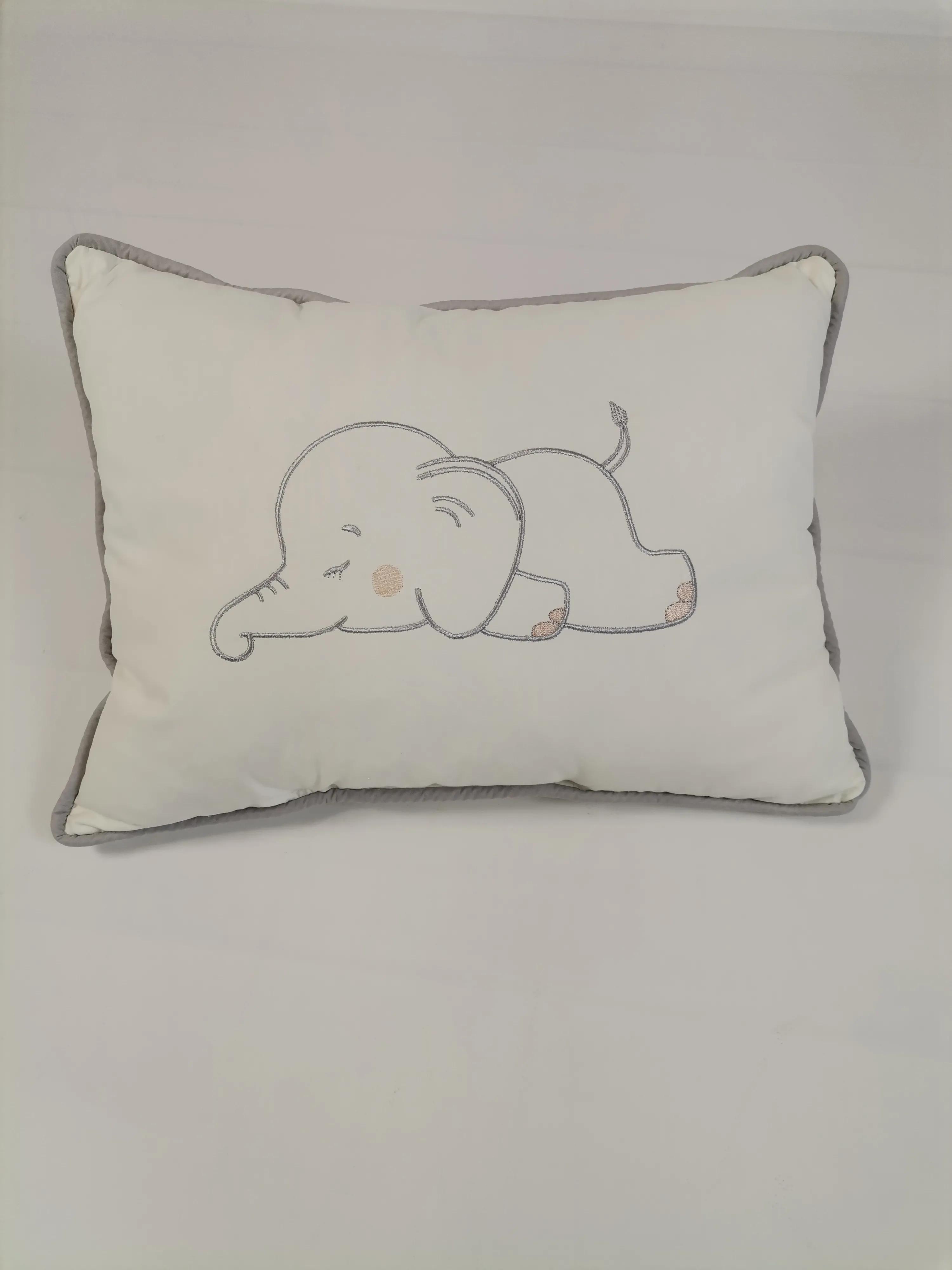 Beyaz Poplin kumaştan üretilen gri fitilli ,Uyuyan fil işlemeli fitilli süs yastık