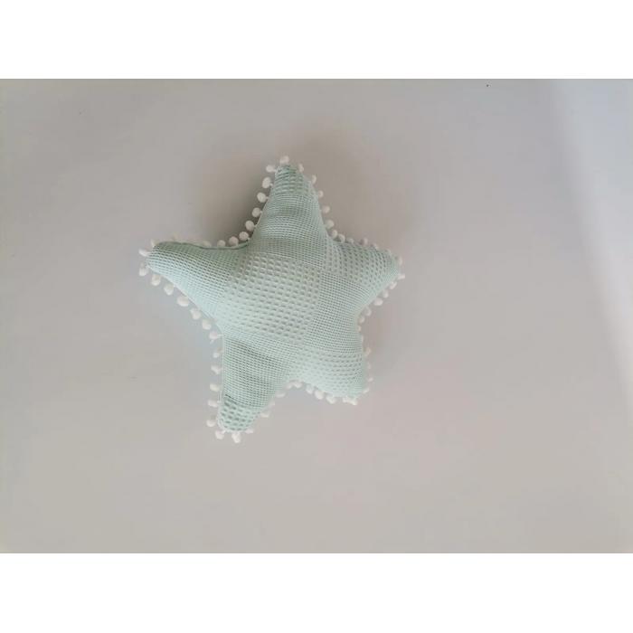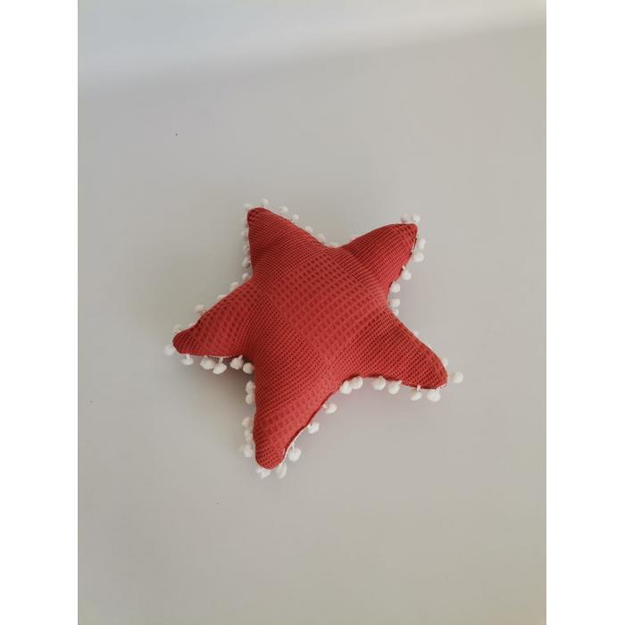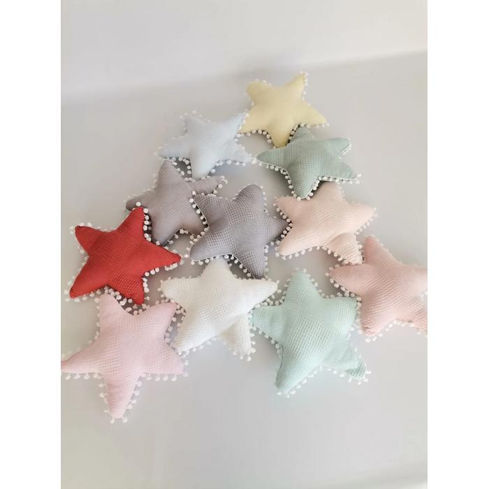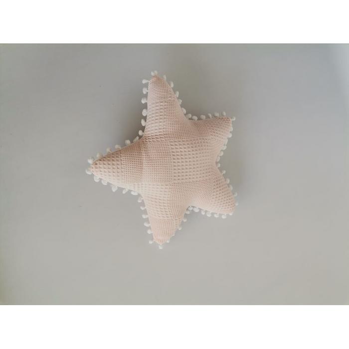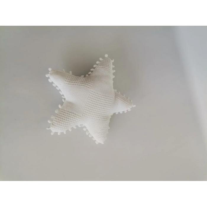 waffle pike kumaşından üretiken beyaz ponponlu Yıldız yastıklarımız 35 - 40 cm civarındadır.
