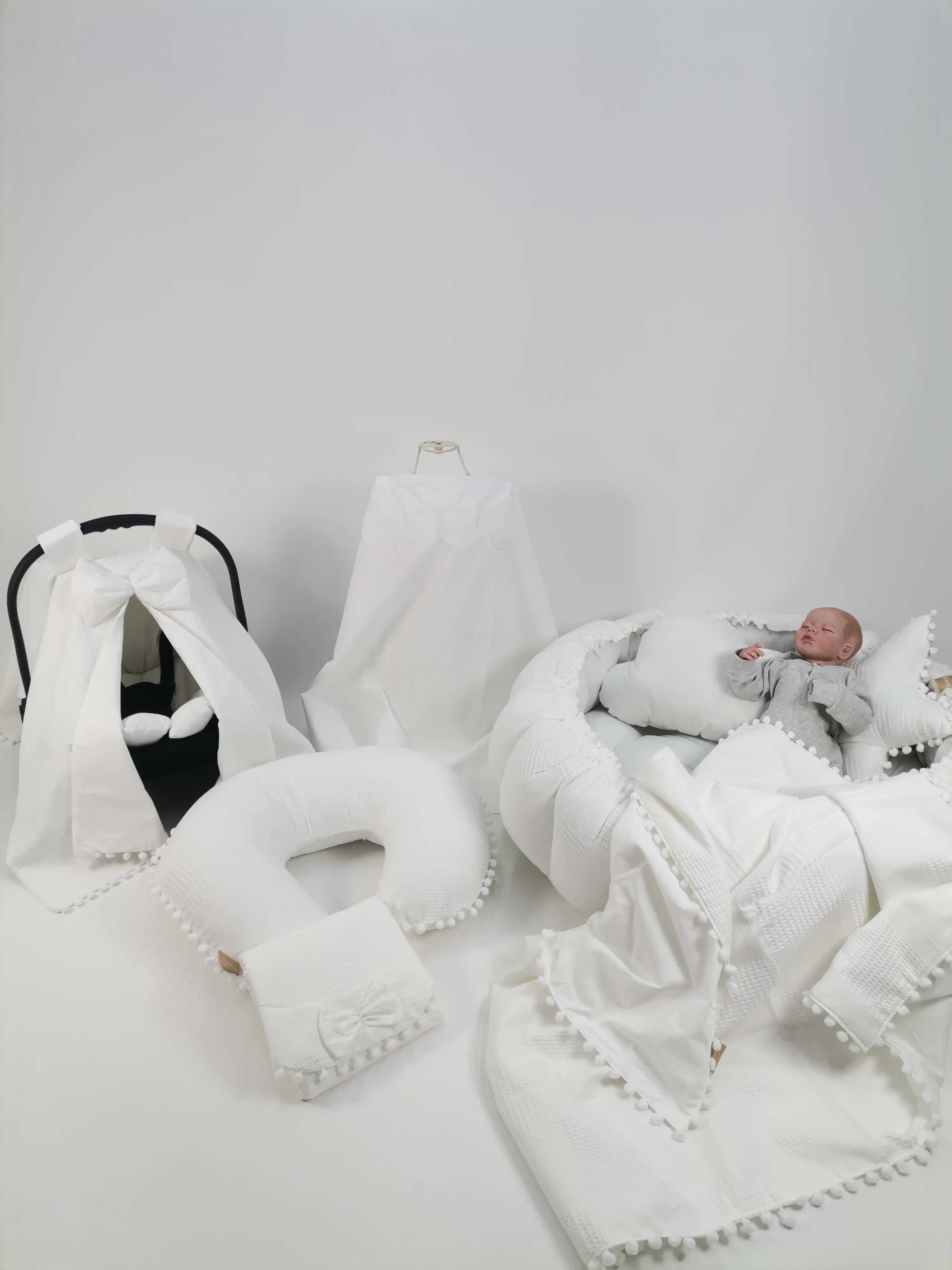 Waffle pike ve poplin kumaştan üretilen Yuvarlak babynestli 9 lu setimiz ;