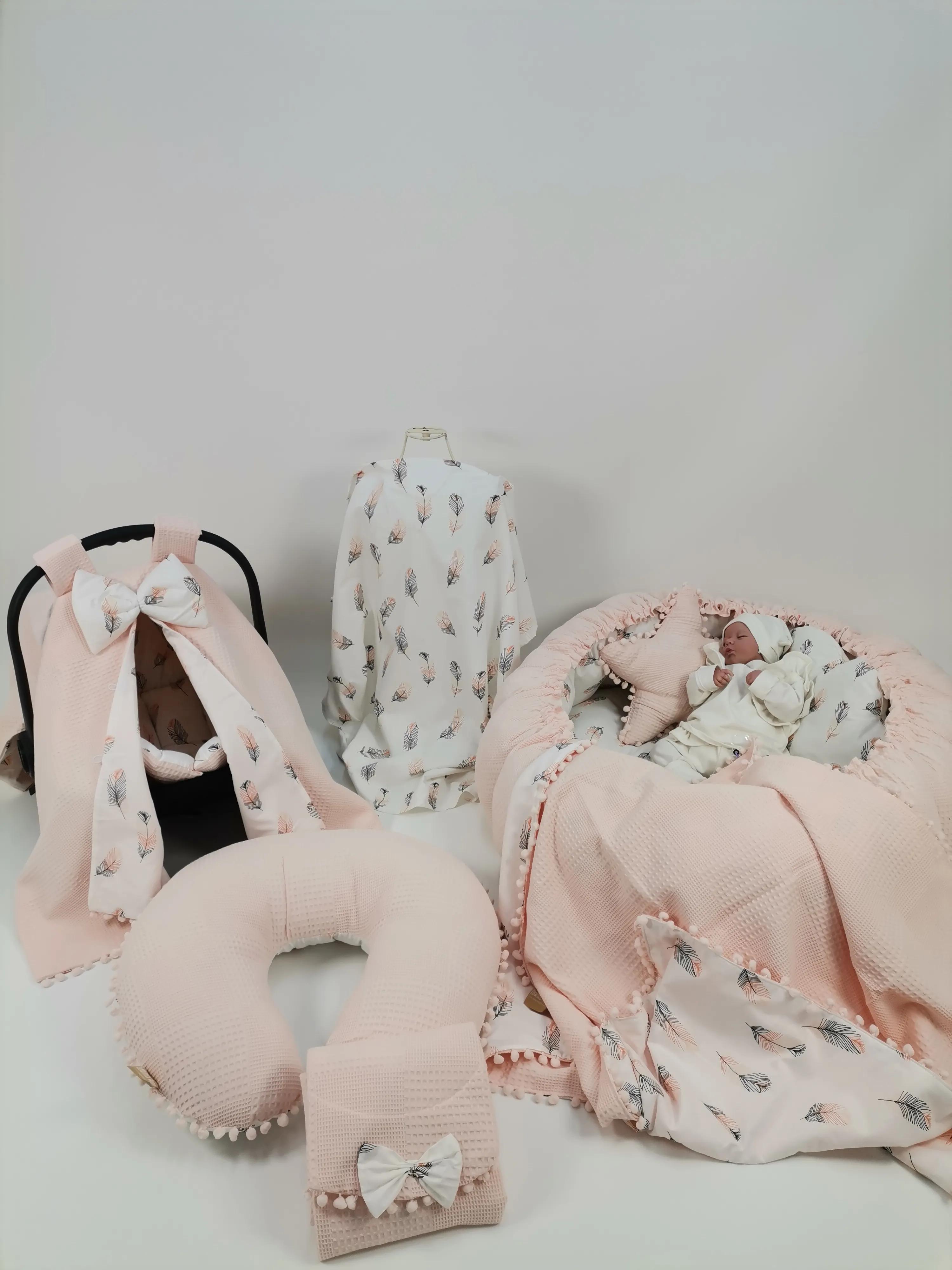 Waffle pike ve poplin kumaştan üretilen Yuvarlak babynestli 9 lu setimiz ;