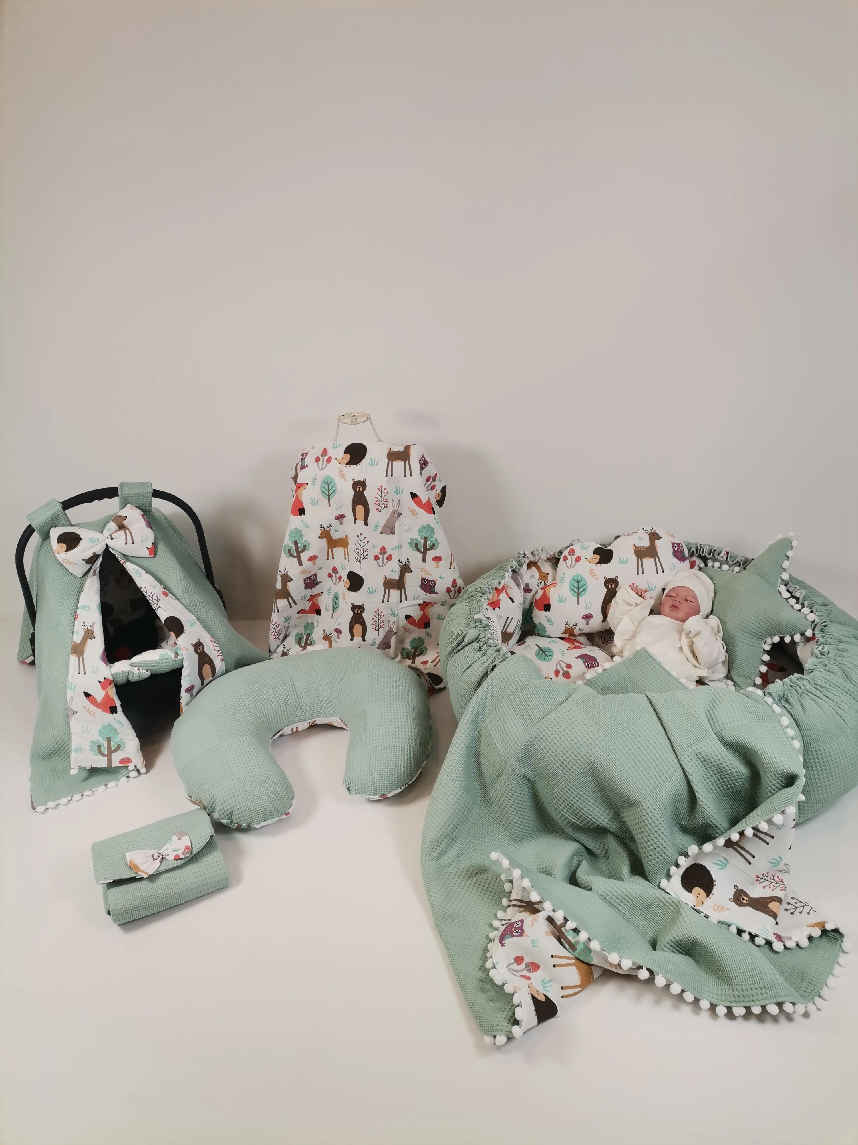Waffle pike ve müslin kumaştan üretilen Yuvarlak babynestli 9 lu setimiz ;